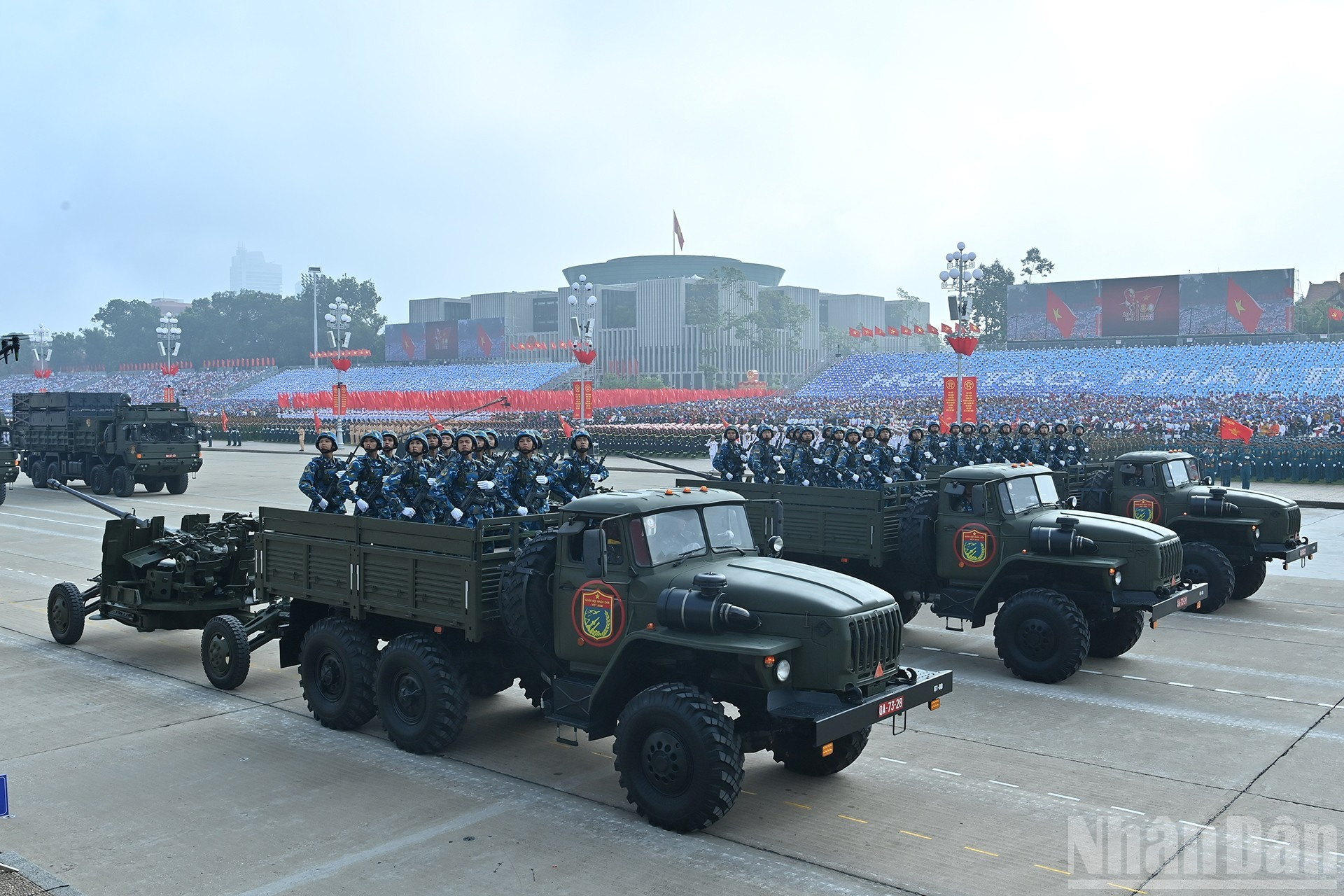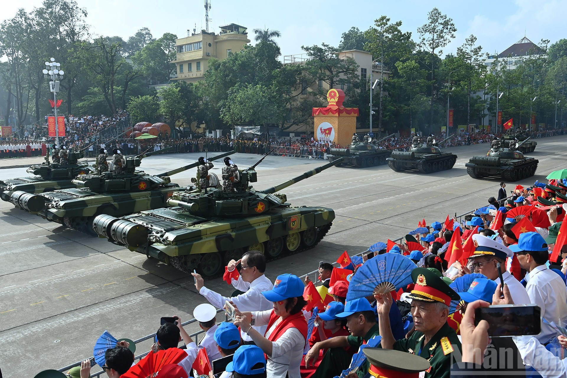 在越南人民军和人民公安各方队完成分列式后,越南人民军的军用车辆和火炮方阵依次驶过主席台,集中展示越南军队的强大力量。