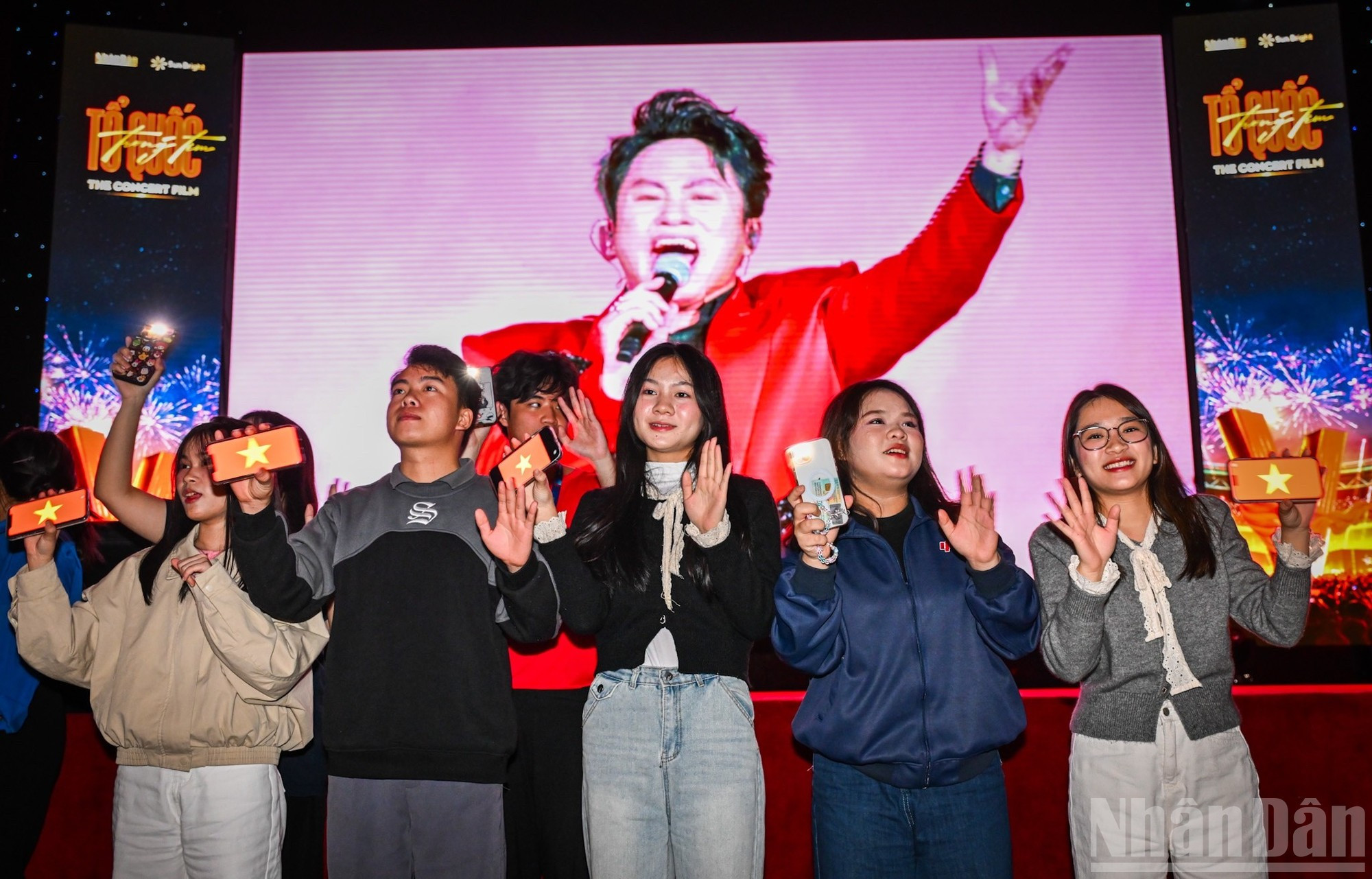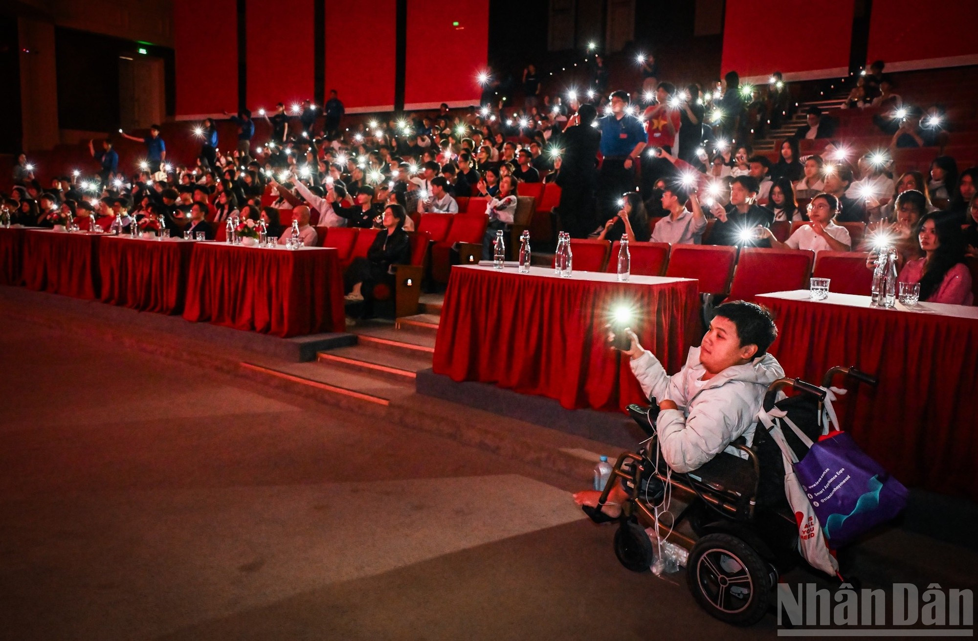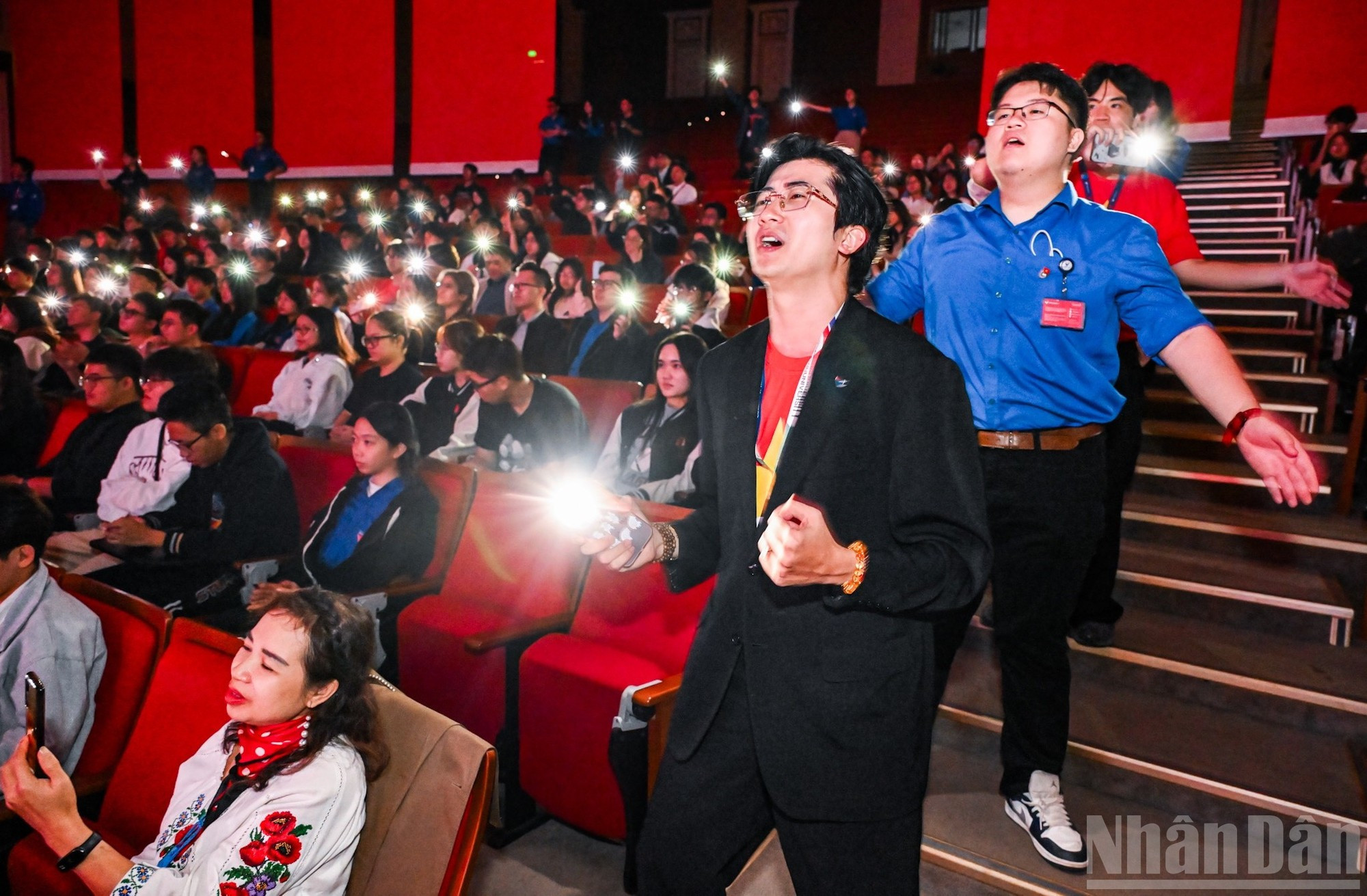 电影放映结束后,《人民报》社代表、VinUni大学教师和学生合影留念。