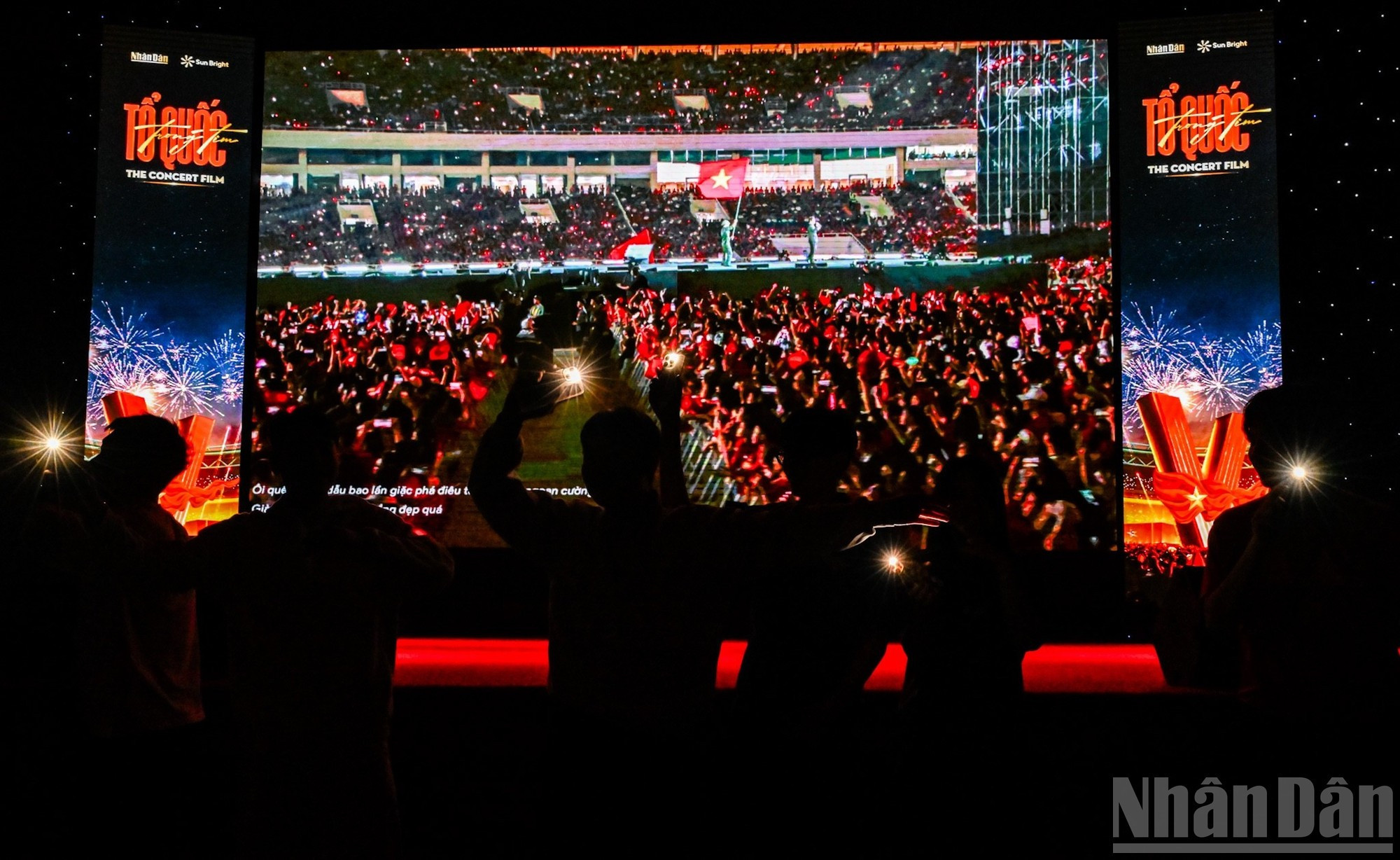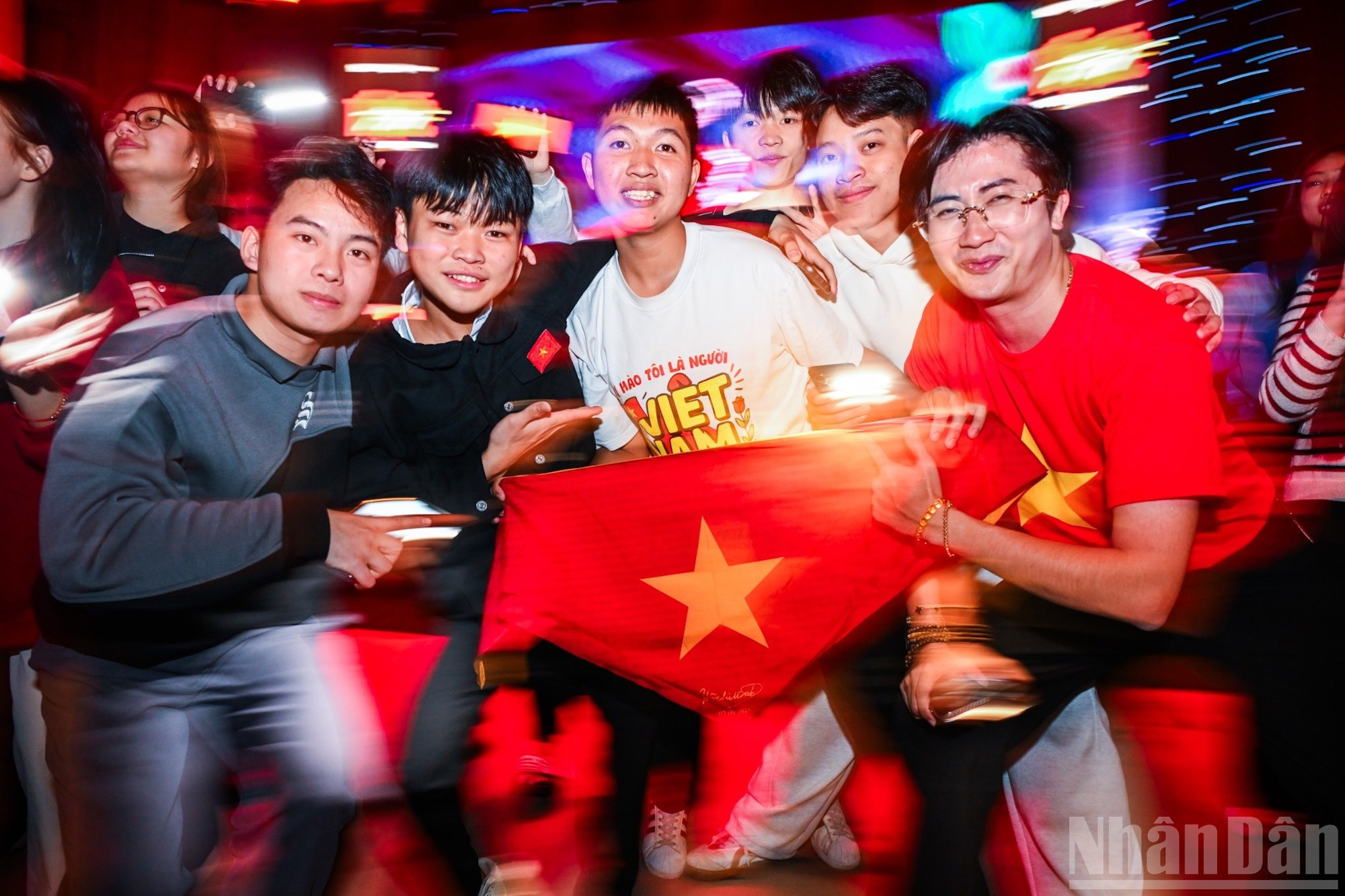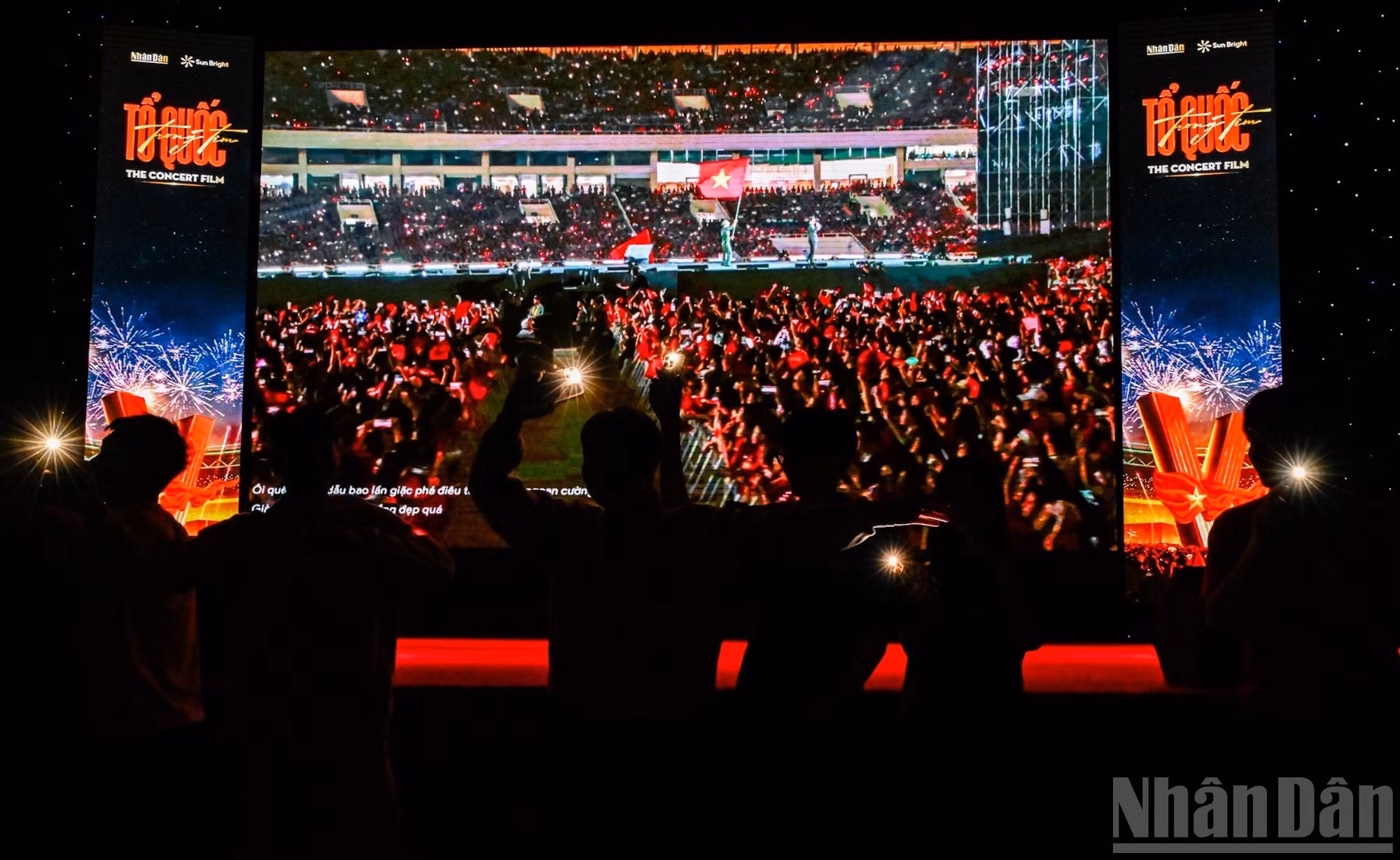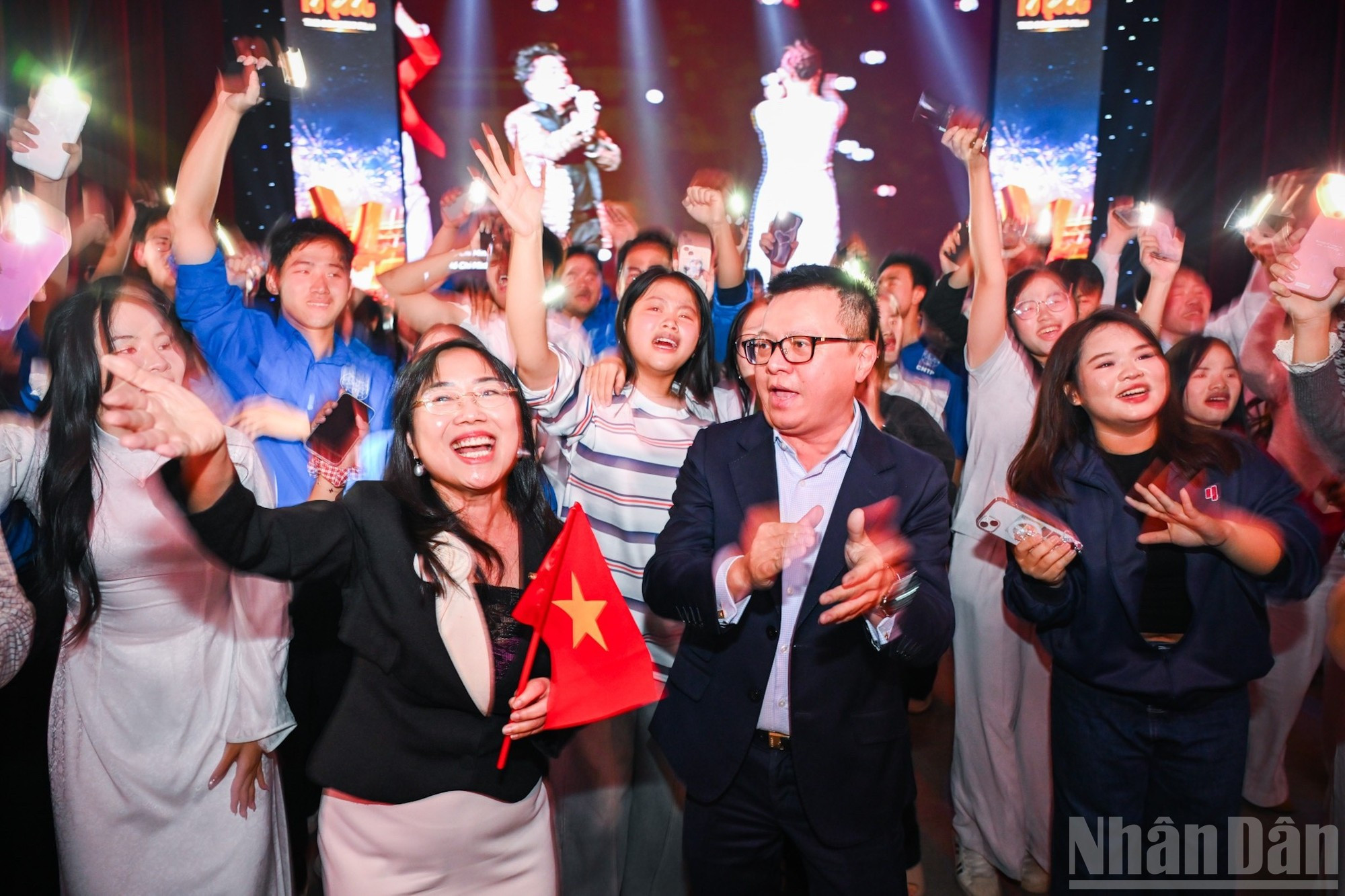 电影放映结束后,《人民报》社代表、VinUni大学教师和学生合影留念。