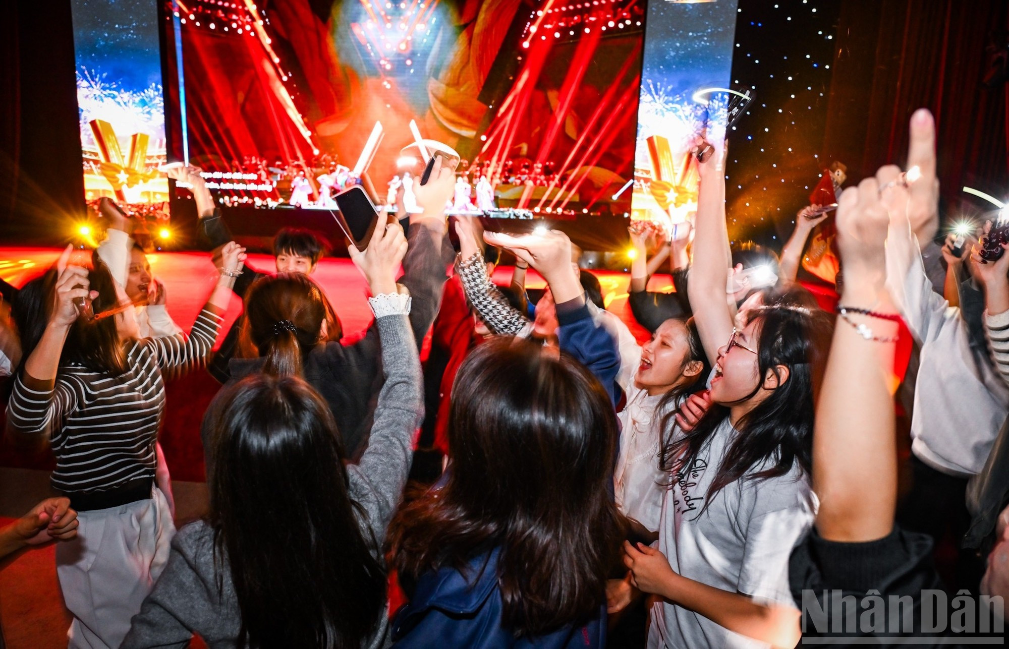 手机闪光灯同时亮起,形成充满活力的“光舞”。