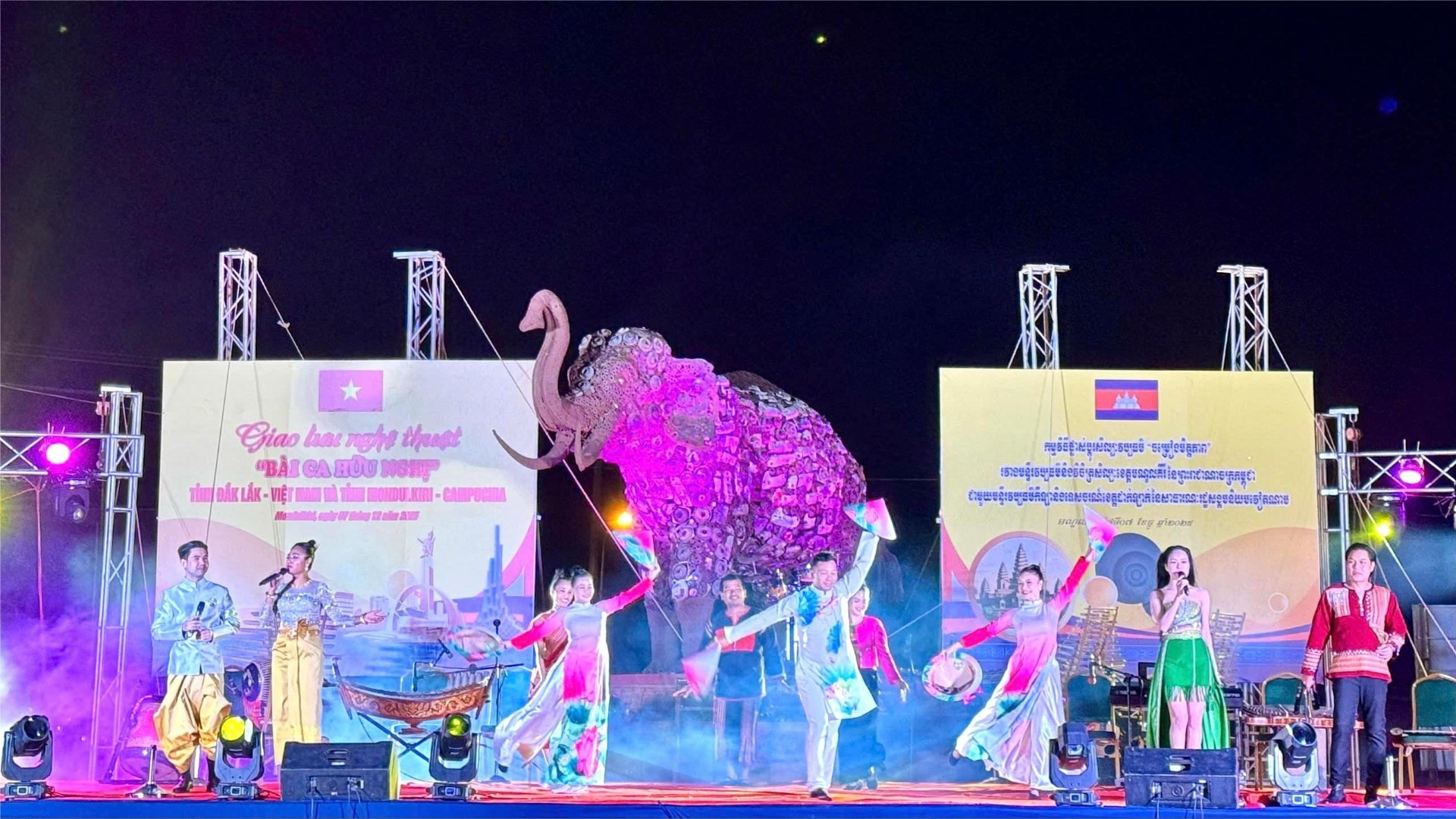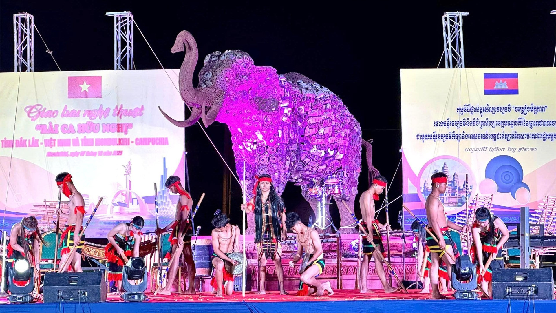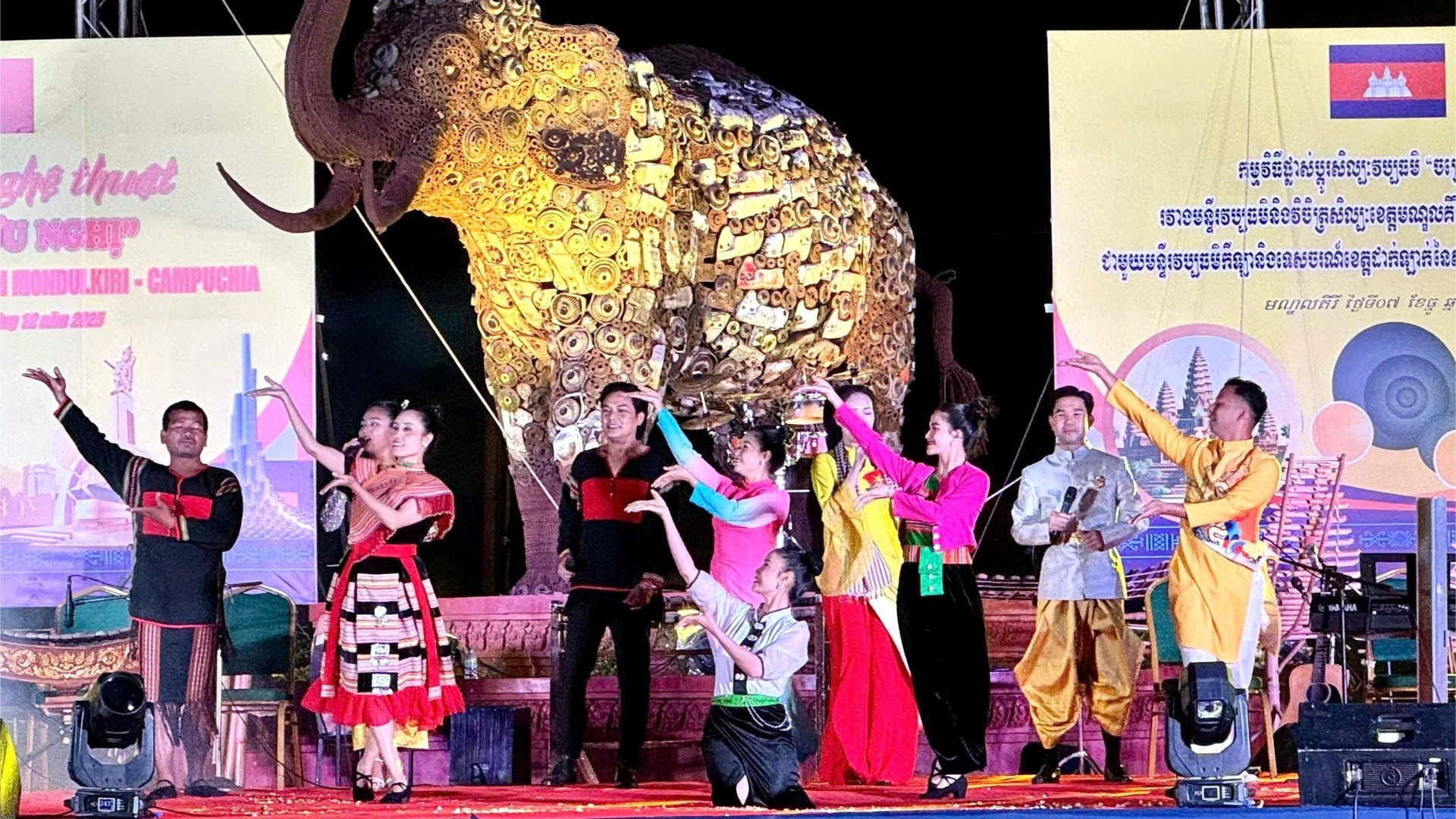 值纪念越南与柬埔寨建交58周年(1967年6月24日-2025年6月24日)之际,越南得乐省文化体育旅游厅同柬埔寨王国蒙多基里省文化艺术厅近日在柬埔寨蒙多基里省森莫诺隆市铁象公园联合举办以“友谊之歌”为主题的文艺交流活动。