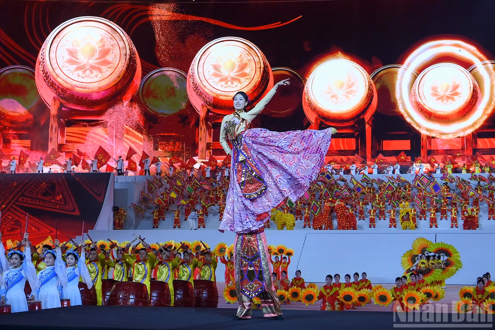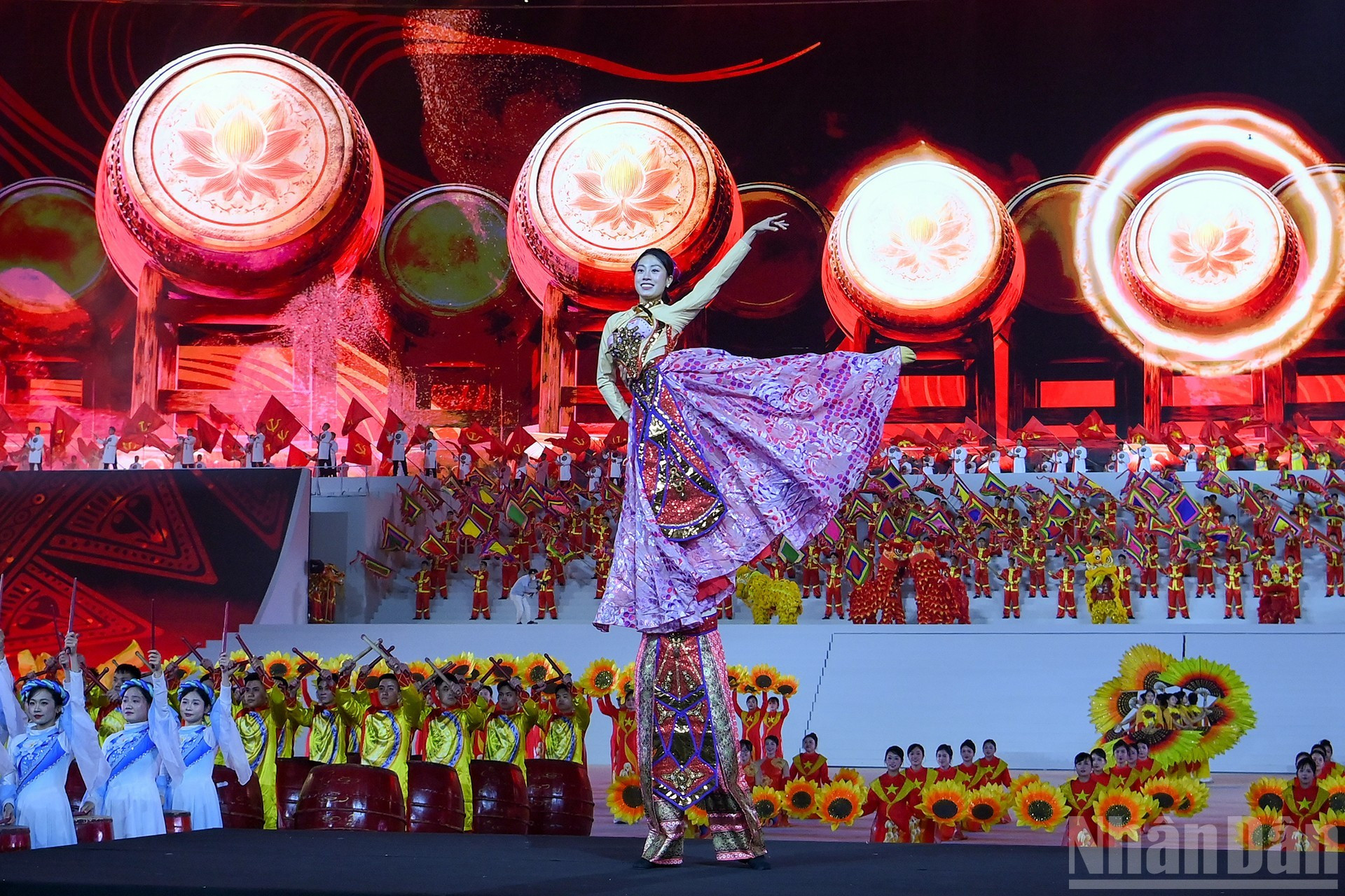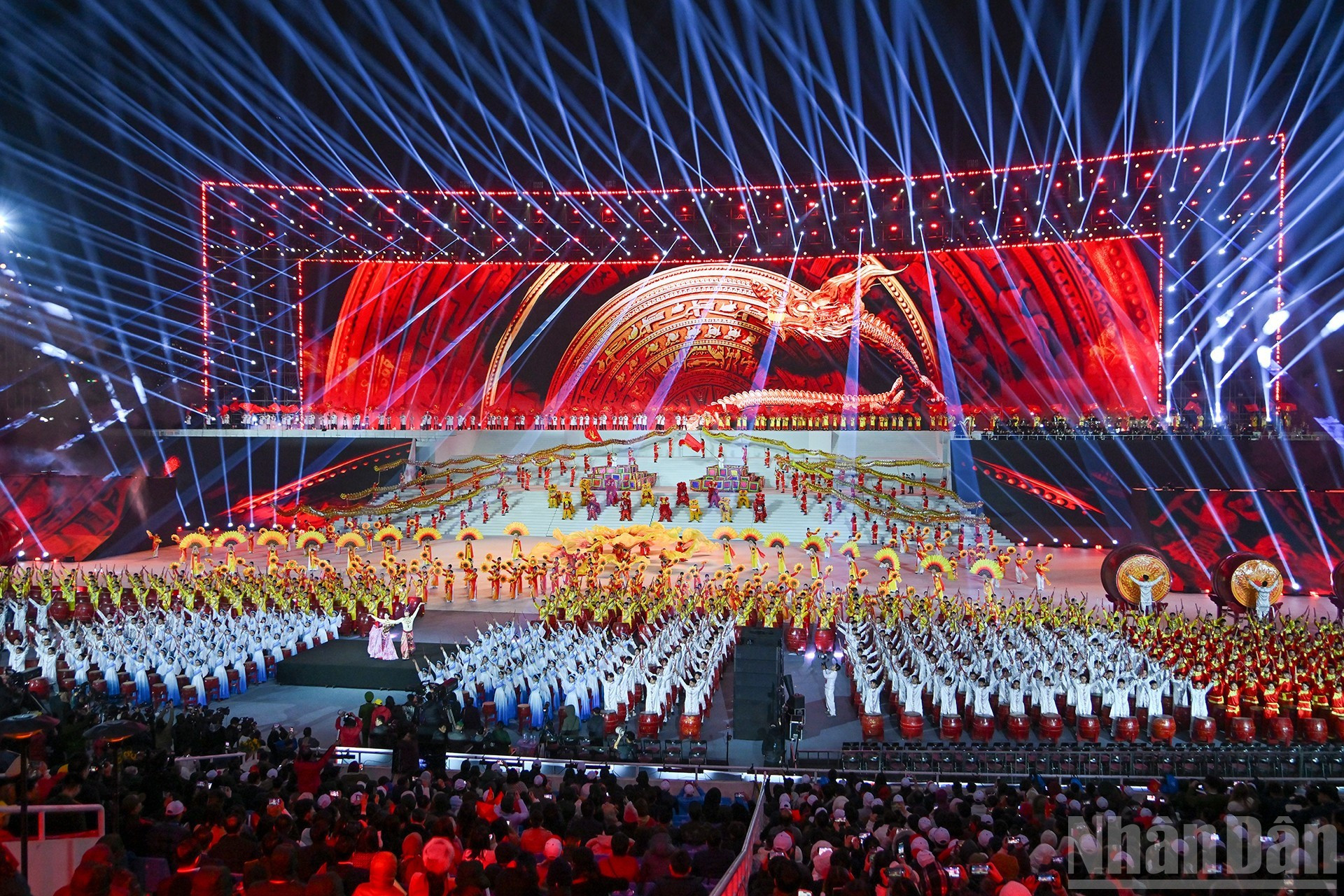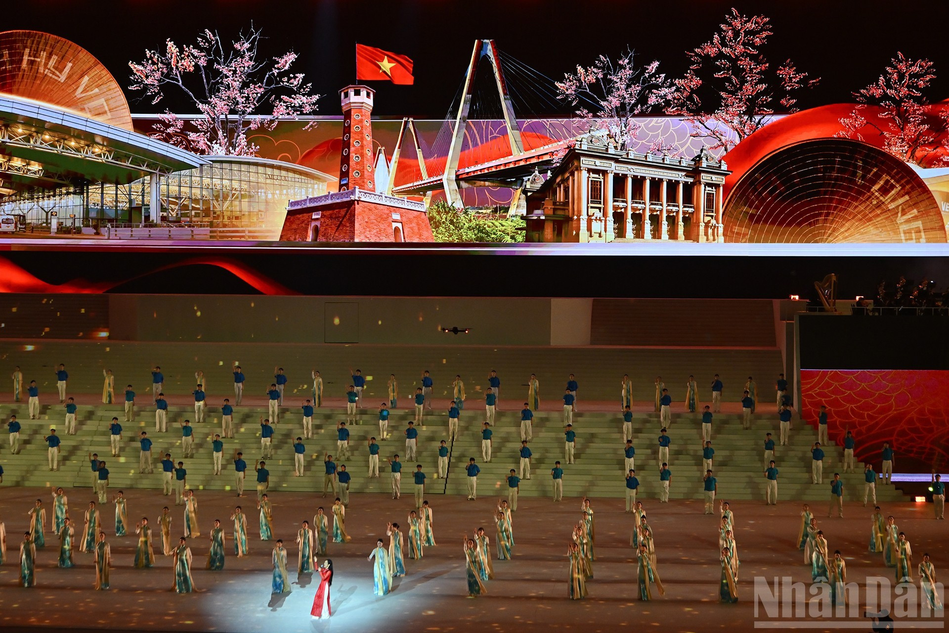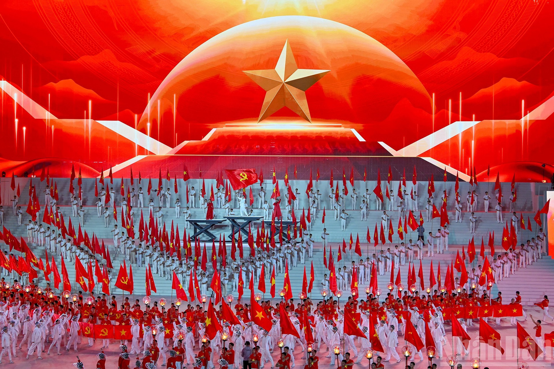 1月23日晚,庆祝越南共产党第十四次全国代表大会胜利闭幕暨纪念党建96周年(1930年2月3日-2026年2月3日)的主题为“在党的光荣旗帜下"特别艺术晚会在河内美亭国家体育场隆重举行。