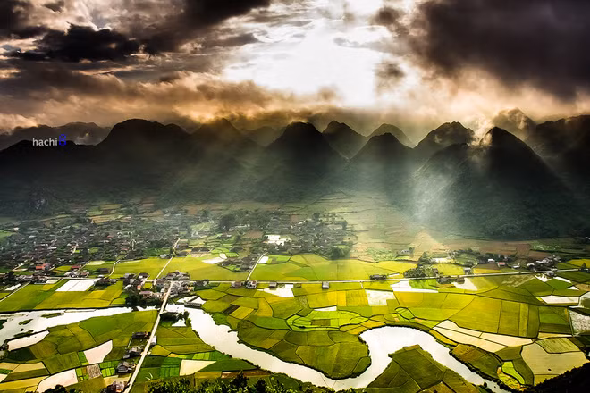 沿着丙一号国道行驶,距离和内160公里,属谅山省北山县的北山镇坐落在山谷里,它被一座一座岩石山拥抱在怀里。北山稻谷的“金季”一般在7月末和11月。