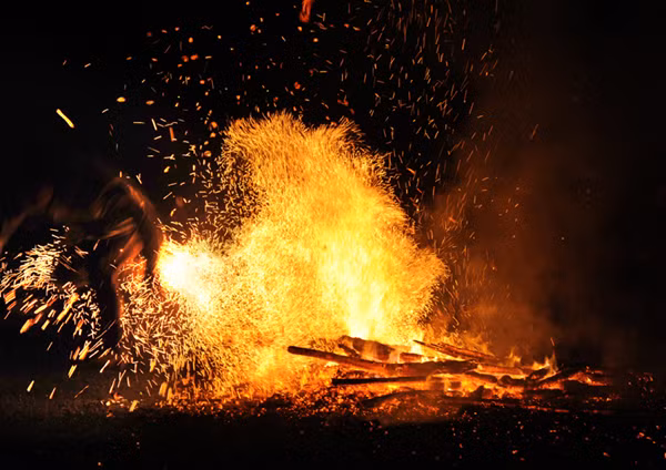 仪式结束后,巴天族小伙子不穿鞋子跳进烧得通红的木炭中