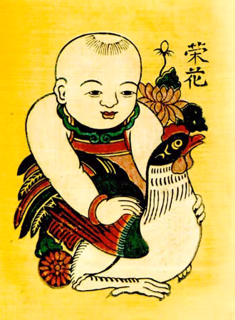 在越南民间的观念中,公鸡打鸣让魔鬼害怕,让阳光照亮黑夜,是护身佛的象征。所以,鸡形象较早就在民间艺术中出现。