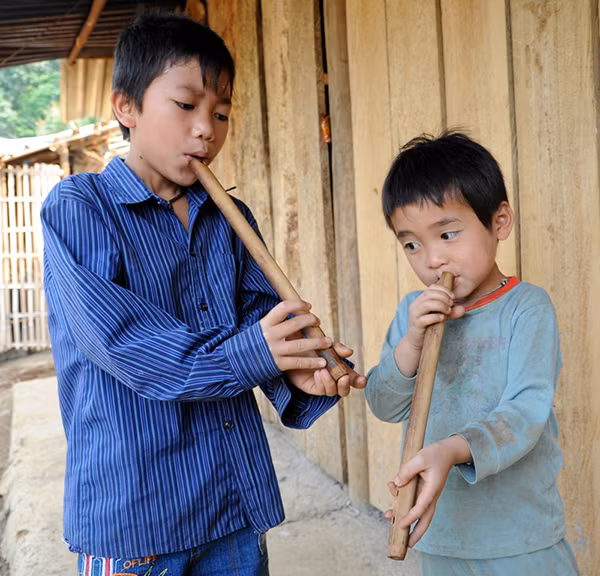 在越南少数民族同胞的精神文化生活里,竹笛是西拉族同胞文艺活动中的常用乐器。在溪边、在田里,笛声悠扬而起,鼓励人们积极参加劳动生产,让生活显得更加美好。
