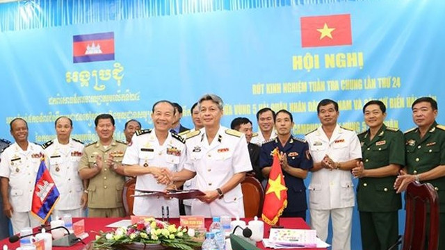 据越通社报道,越南海军第五区司令部与柬埔寨皇家海军12月4日在坚江省富国岛县举行第24次联合巡逻经验总结会议。