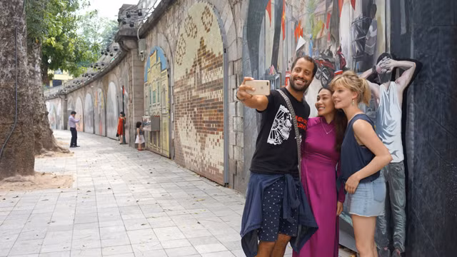 坐落在河内古街区中心的冯兴壁画街也吸引众多外国游客前来观光拍照,生动地展现河内昔日之美和现代风貌的壁画打造成一个开放式博物馆,留住了游客匆匆的脚步。