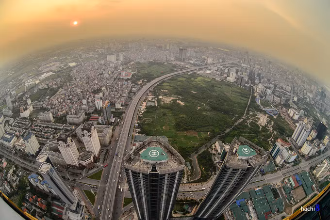 站在高楼上看着日落,等待最后一丝阳光没入地平线,河内市的灯光闪闪烁烁的开始亮了起来。