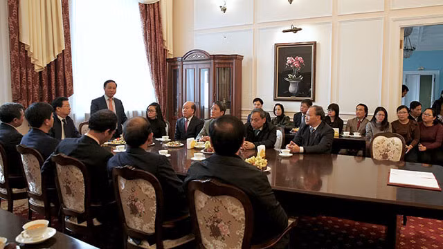 郑廷勇副总理在大使馆干部职员面前发言时表彰大使馆近期为增进越俄传统友谊和全面战略伙伴关系所作出的贡献,同时要求大使馆继续推进经济外交工作,积极协助越南企业对俄罗斯投资与出口,并且做好领事和公民保护工作。