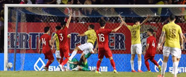 第70分钟,泰国队在右边获得任意球,Supachok主罚,把球送进了邓文林的球门。但之前一名泰国球员在禁区内拉人犯规,主裁判否决了进球。
