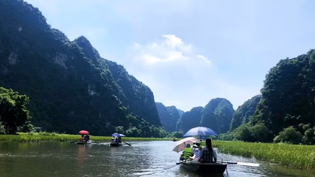 第六个目的地:在周末两天你不妨来到宁平省参观最迷人旅游景点之一——三谷碧洞。坐船沿着位于苍苍稻田中间的吴同江上游,你将会惊诧于多年前地质构造的三个洞穴之美。在此路程中你同时可以参观华闾胜地。当下是稻谷成熟的季节,一片碧绿盈盈的稻田又接着一片黄橙橙的稻田,构出精美绝伦的画面。(完)