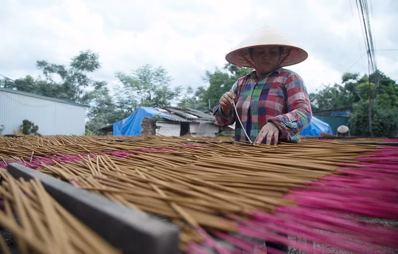 佛香制作业已同当地人民的生活密切相连,并给他们带来稳定收入。从事该行业的劳动者每个月收入为500万至600万越南盾。富有染色、晒干、调染色粉等经验的劳动者的收入较高,每个月达600万到800万越南盾。
