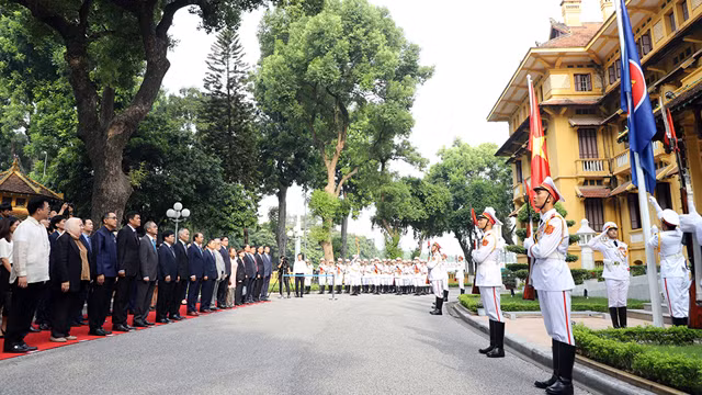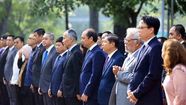 越南外交部副部长阮国勇、委内瑞拉驻越南大使、各国驻河内外交使团团长乌斯卡特吉、东盟各国驻河内大使馆代表等出席仪式。