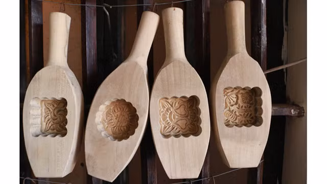 拥有灵巧双手的工匠们已制作出款式多样且大小不同的饼印,如:梅花、莲花、玫瑰花、虾、鱼、螃蟹等多种花纹。