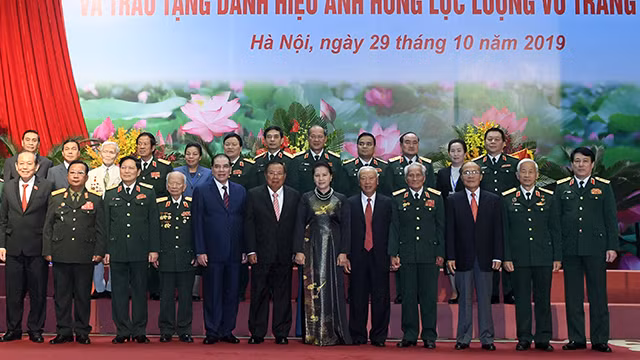 值此之际,越南国会主席阮氏金银代表越南党和国家向在抗美时期取得优异成绩的越南志愿军和专家授予人民英雄武装力量称号。