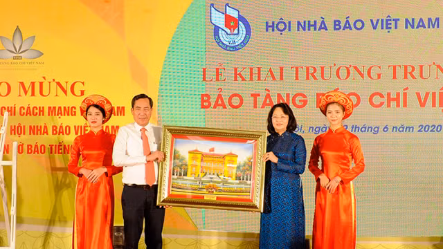 越共中央政治局委员、中央书记处书记、中央宣教部部长武文赏,越南国家副主席邓氏玉盛,政府副总理武德儋,越南新闻工作者协会主席、《人民报》社总编、中央宣教部副部长顺友等一同出席开馆仪式。
