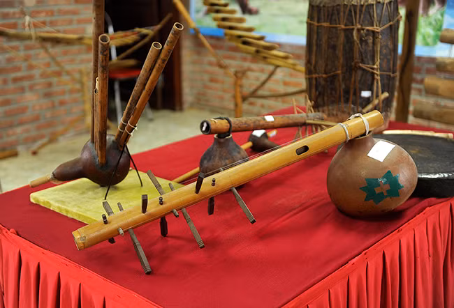 在越南各民族文化旅游村展示的越南各民族传统乐器。