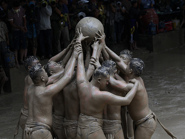 泥球摔跤节体现水稻种植居民祭祀太阳神,祈求风调雨顺,庄稼丰收的愿望。不仅如此,这也是锻炼身体和建立人民团结精神的体育活动。