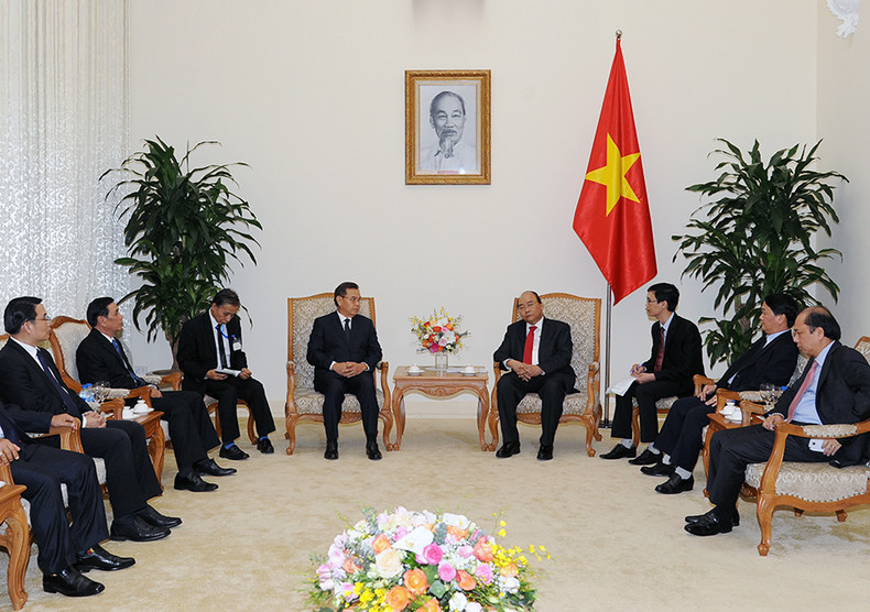 阮春福总理会见老挝建国阵线中央委员会主席赛宋蓬•丰威汉。