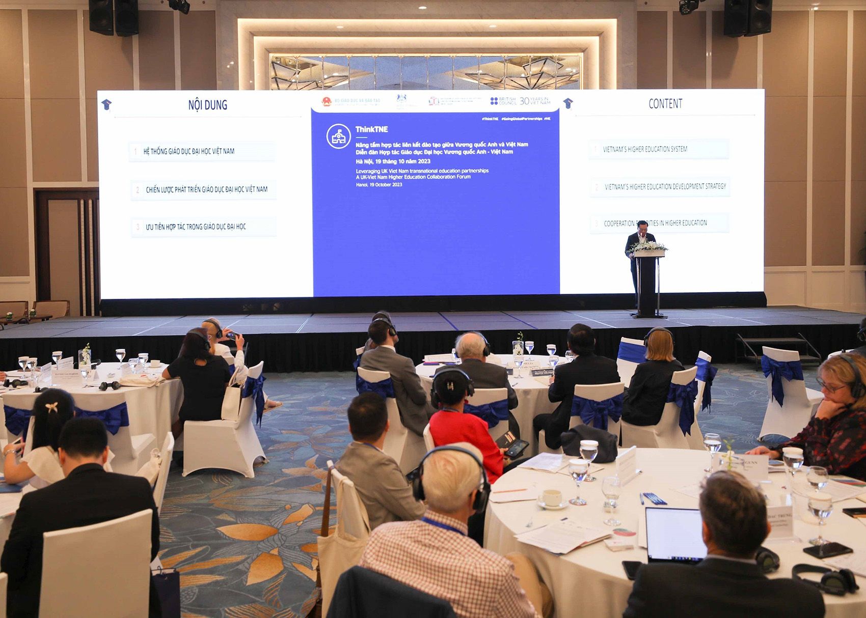 英国文化协会与英国驻河内大使馆和越南教育与培训部于2023年10月19日联合举办了题为“ThinkTNE——加强英国与越南培训合作”的培训合作论坛。(图片来源:越通社)