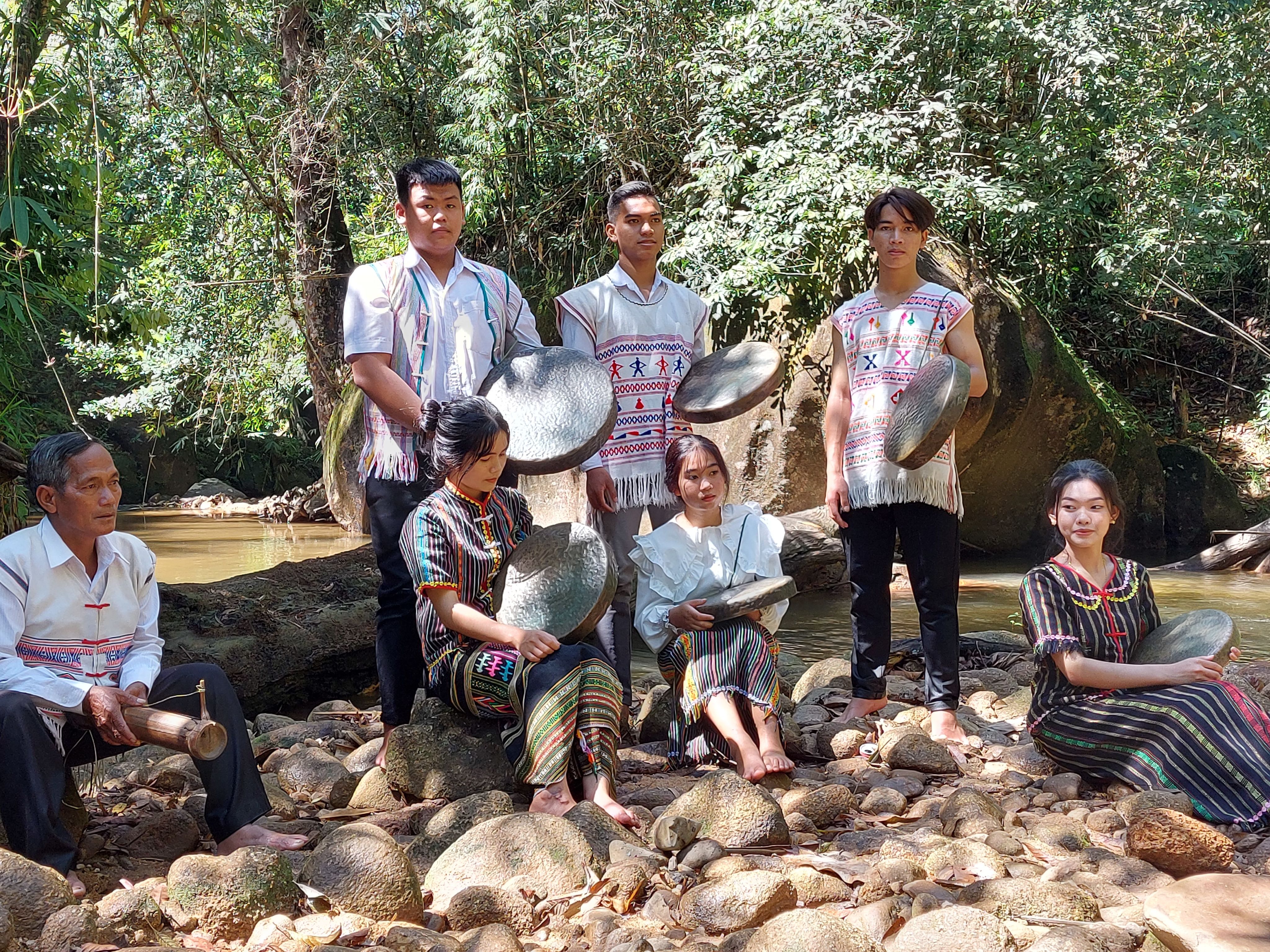 从山石,林竹而锣、钲、石琴(lúrgòong)、汀宁琴(tingning)、特龙琴(klôngpút)、绍竹琴(t’rưng)等乐器已奏响神奇的声音。