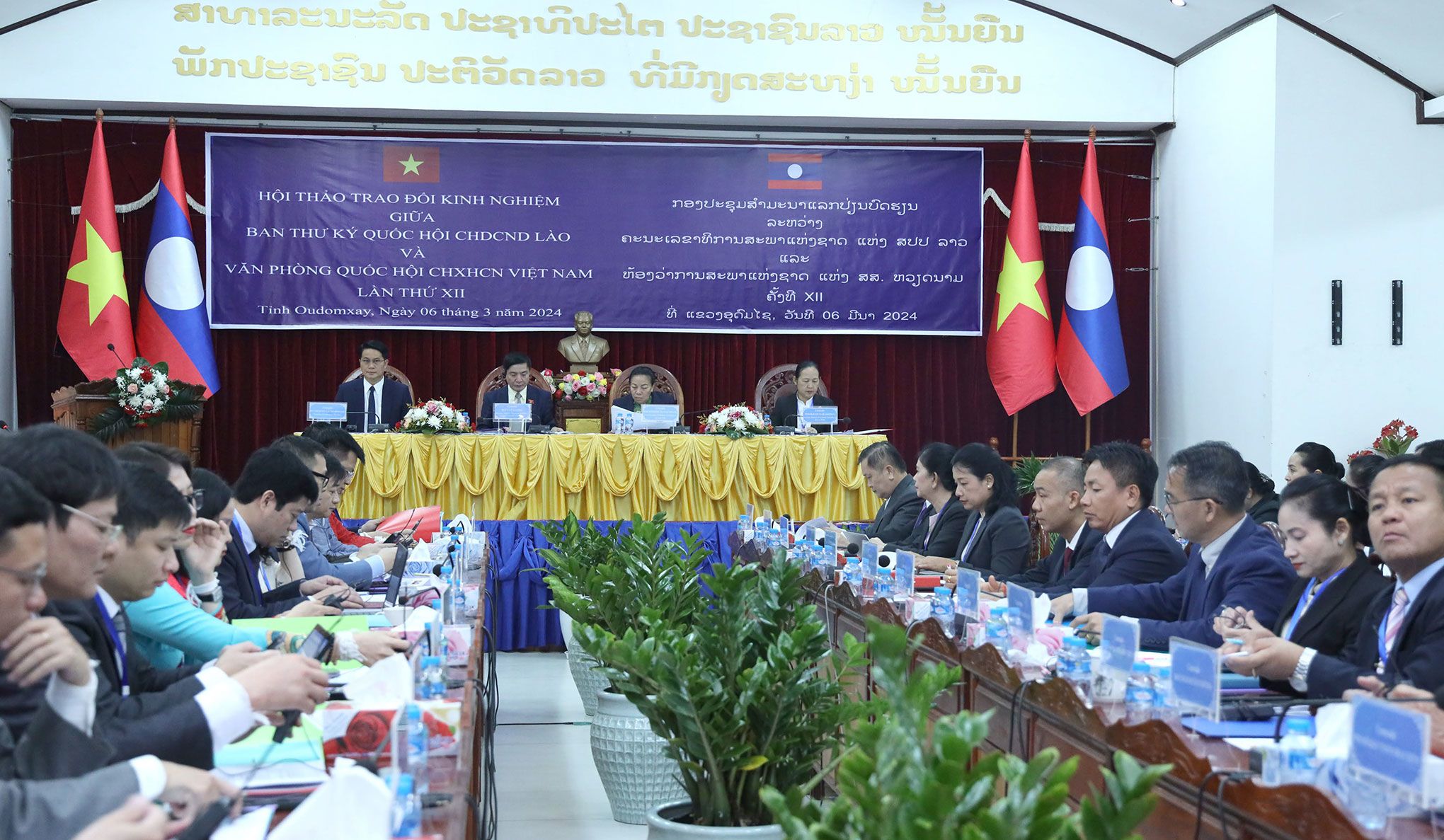老挝国会秘书处在乌多姆塞省与越南国会办公厅3月6日举行第12次工作经验交流研讨会。