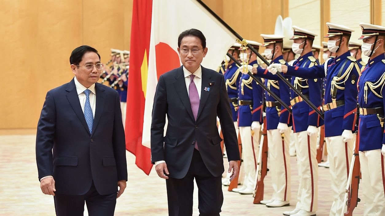 应日本首相岸田文雄的邀请,由政府总理范明正率领的越南高级代表团刚圆满结束正式访日之旅。范明正总理此访重申越南和日本推动致力于亚洲和平与繁荣的广泛战略伙伴关系迈向新高度、日益深入务实发展。