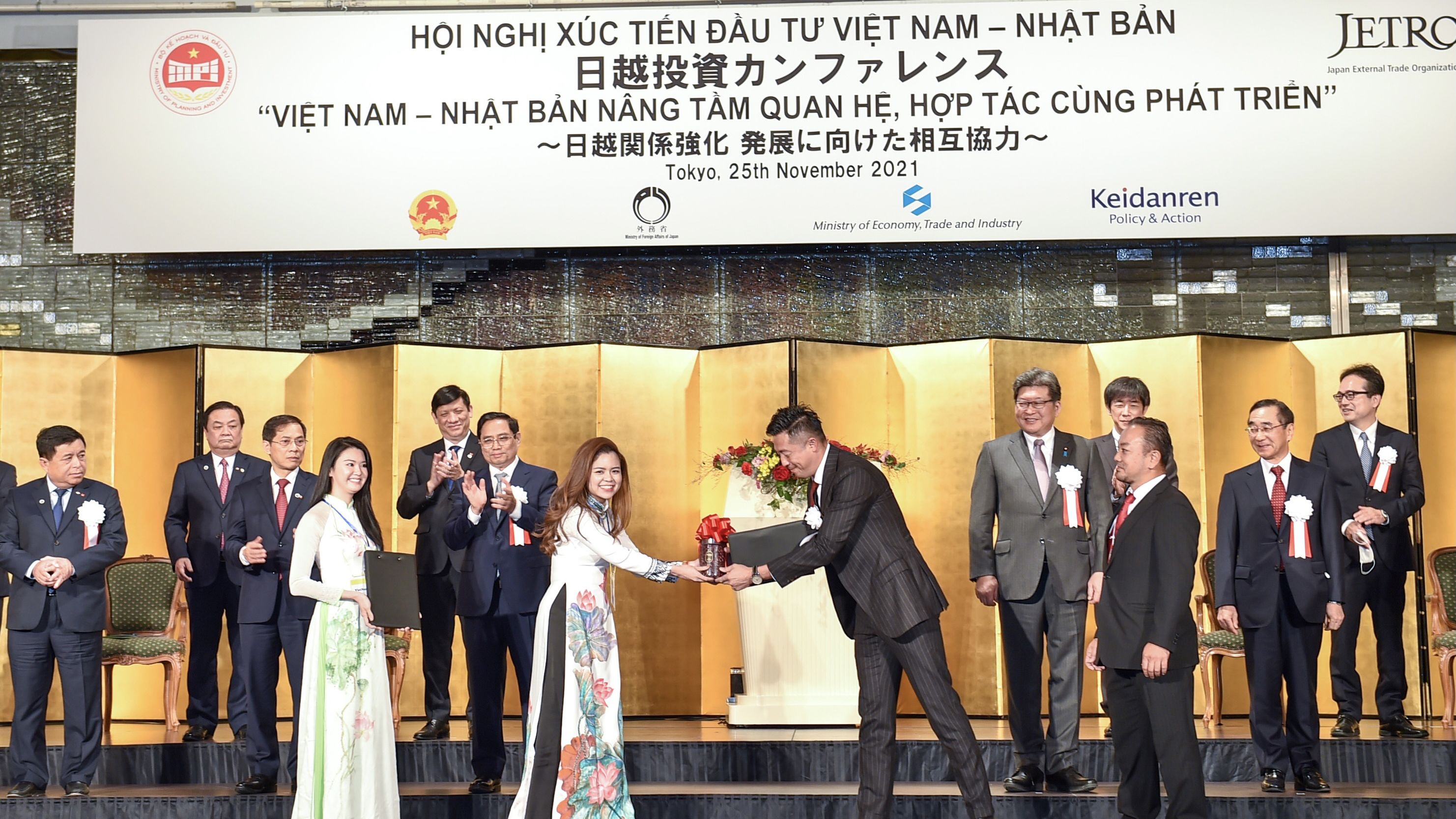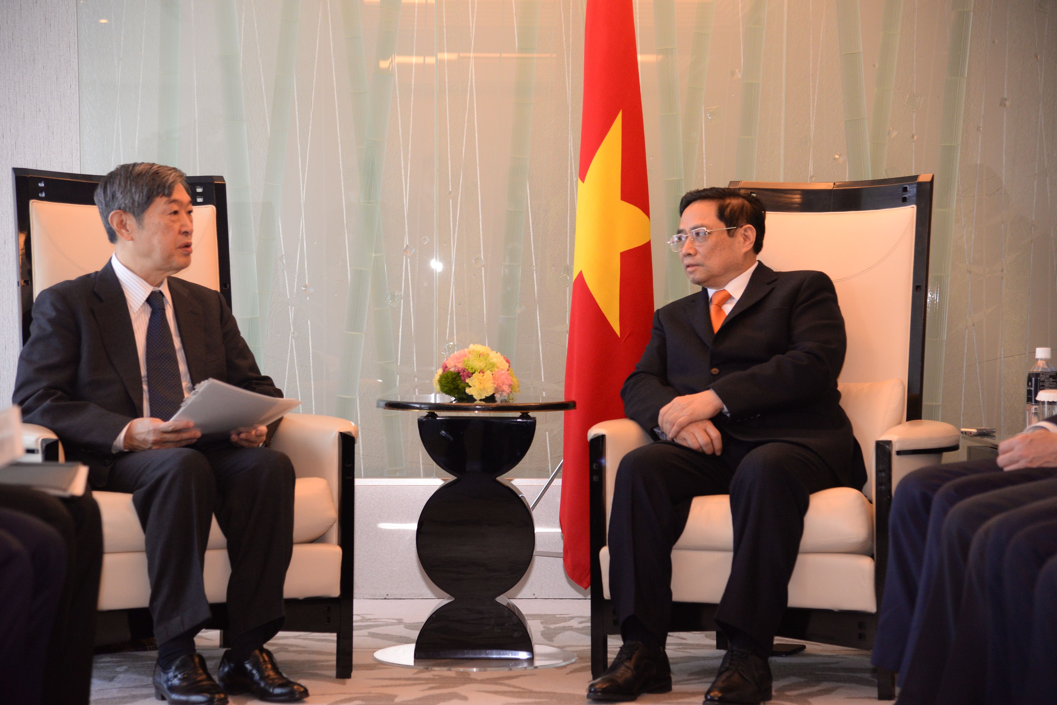 范明正总理在与日本领先集团和投资者进行对话时欢迎日本企业将越南选为投资目的地;再次重申越南承诺营造开放、透明的投资环境,愿为企业创造有利条件。两国政府同意密切合作,为利用日本官方开发援助资金在越南开展的多个项目化解困难,促进区域互联互通和重点交通设施项目,为工业基础设施发展作出贡献。