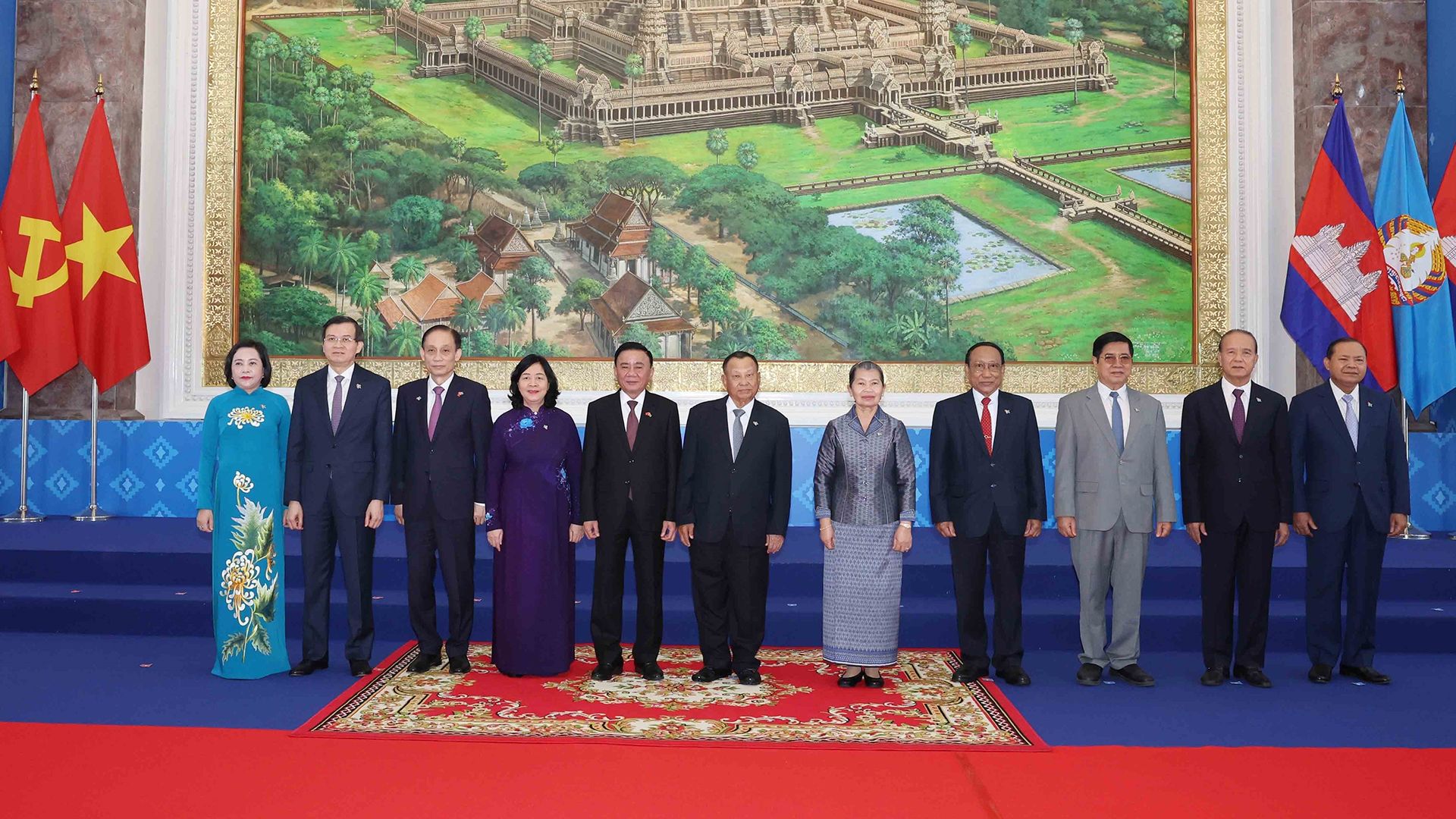 两国领导人强调,越南与柬埔寨是山水相连的邻邦国家,在争取独立和民族解放的斗争事业中同甘共苦、相互支持、彼此帮助。两国传统友好关系由历代领导人精心培育,并不断得到当代领导人继承与发展,面向未来持续巩固。双方高兴地看到,近年来两党两国合作取得强劲发展,在政治、国防-安全、经济-贸易、教育-培训、民间交往、地方合作等各领域不断走深走实、取得实效。