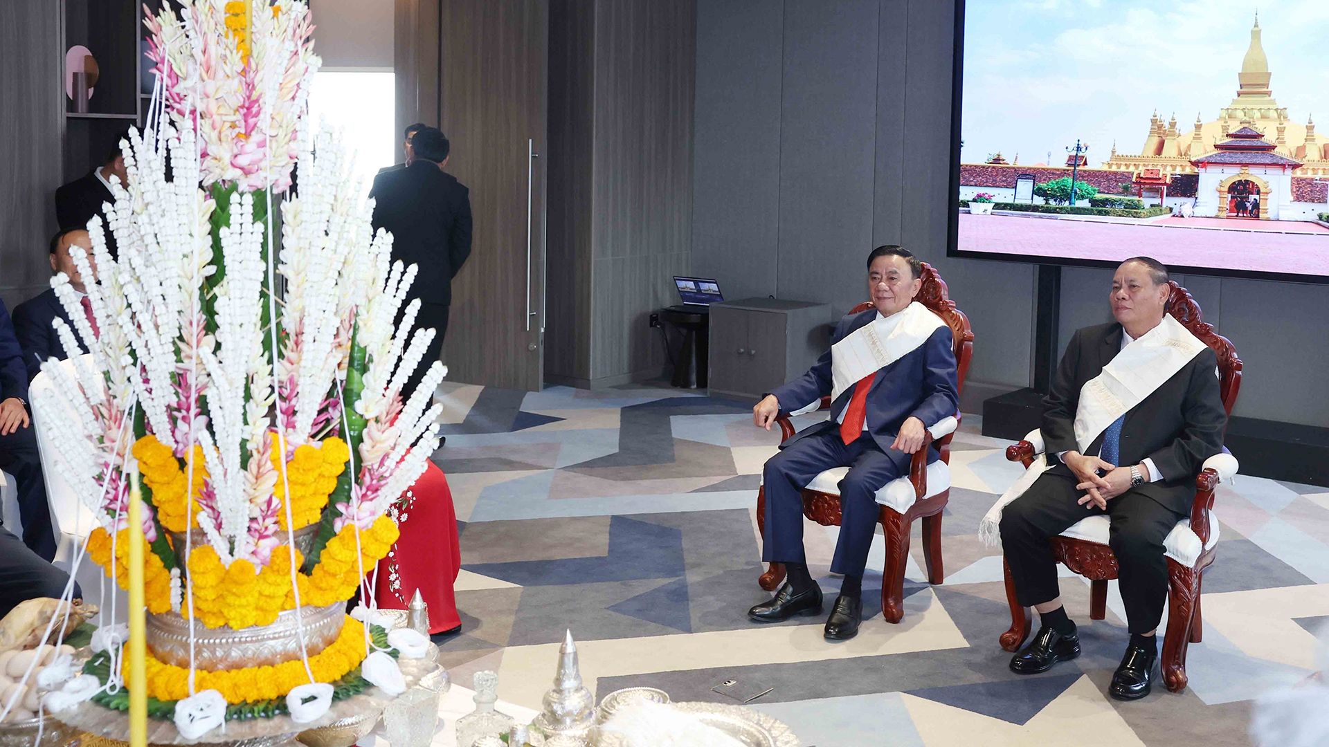 越共中央书记处常务书记陈锦秀与老挝人民革命党中央书记处常务书记维莱·拉坎丰。(图片来源:越通社)