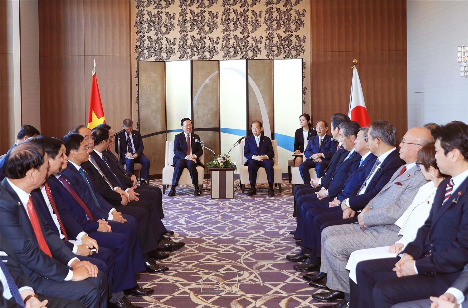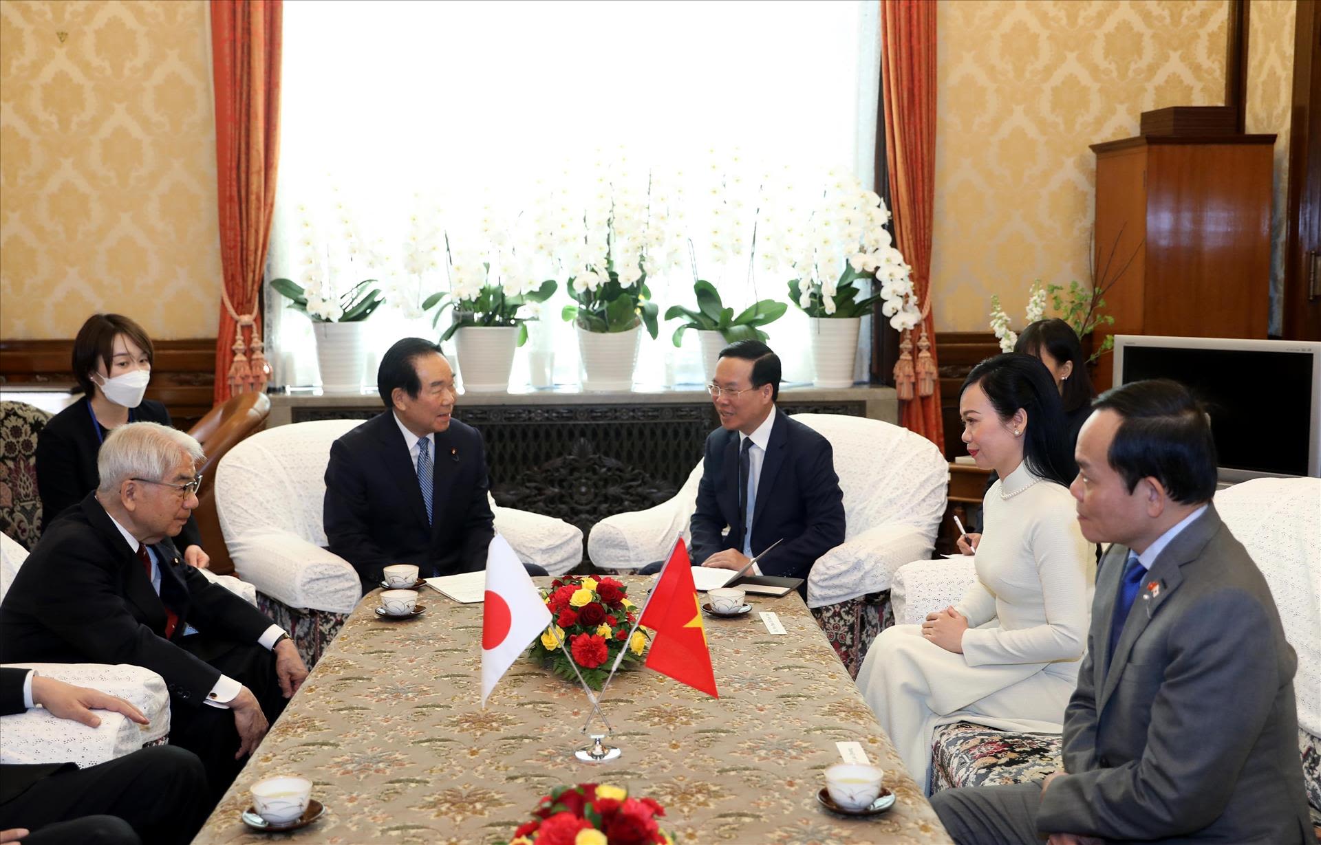 值此之际,越南国家主席武文赏会见了日本众议院议长额贺福四郎、日本参议院议长尾辻秀久;以及日越友好议员联盟主席二阶俊博;日本前首相菅义伟;日本前首相、自民党副总裁麻生太郎;日本公明党党首山口那津男,日本共产党委员长志位和夫,以及日本国会议员和日本友人等。