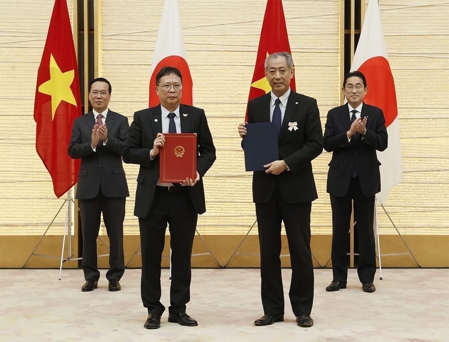 越南国家主席武文赏与日本首相岸田文雄共同见证了两国部委多项合作文件的签署,包括: