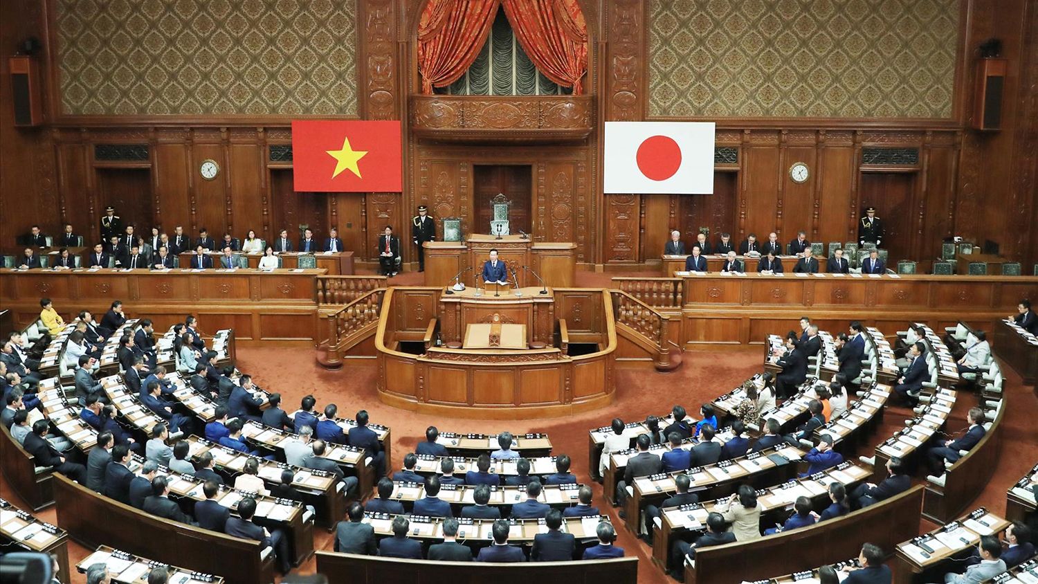 在首都东京,国家主席武文赏在日本国会发表施政演说时重申,越南和日本拥有许多互补的战略优势和利益。国家主席表示希望同日本将两国关系建成真正的“诚挚朋友、可靠伙伴、战略合作、持续未来”关系。