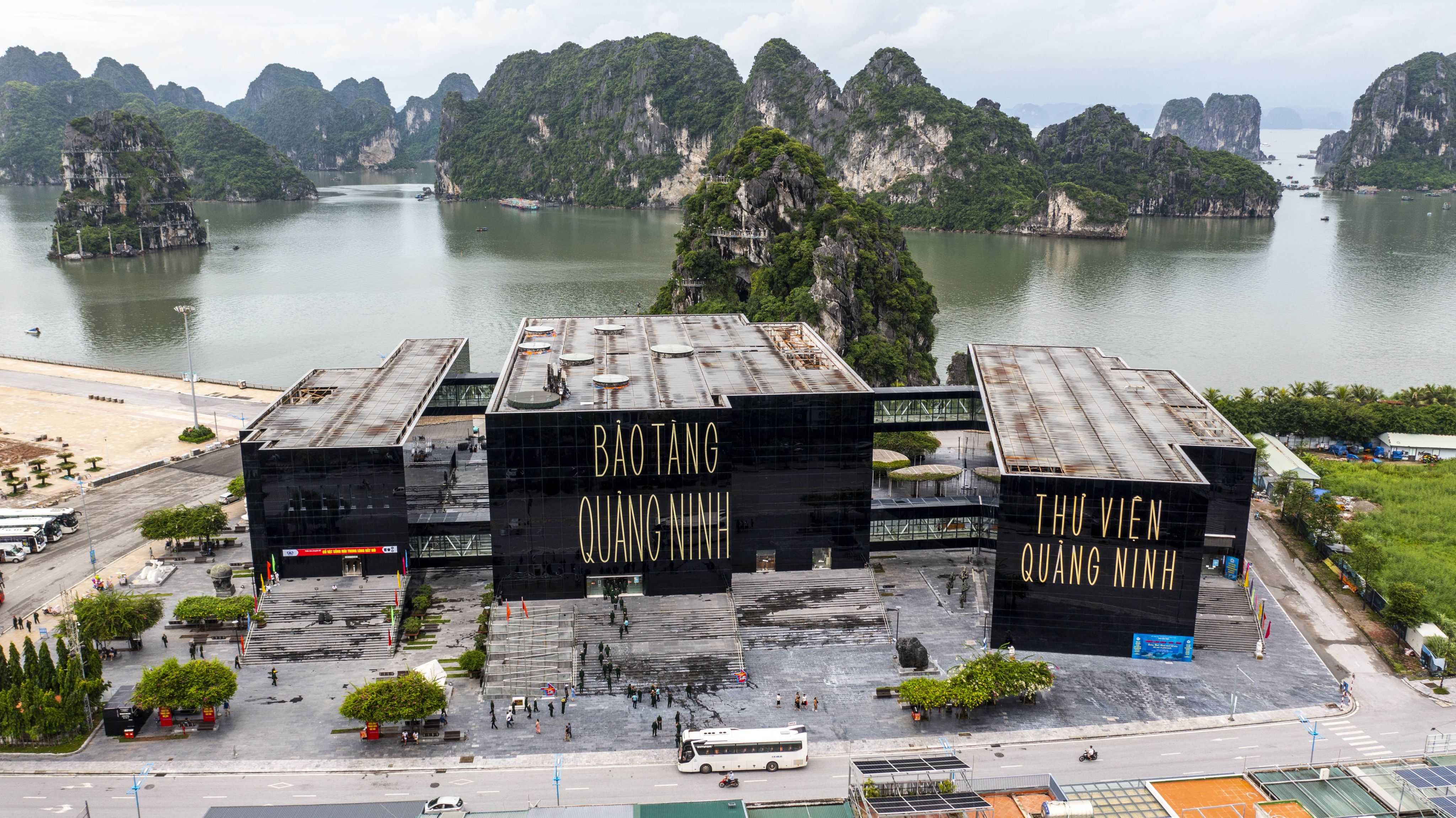 广宁博物馆-图书馆位于下龙市陈国巘街,是一座令人印象深刻的文化综合体,被誉为“海湾沿岸的黑珍珠”。该项目于2013年落成,投资总额近9000亿越盾,建筑风格独特,灵感来自于煤炭形象——广宁省的象征。
