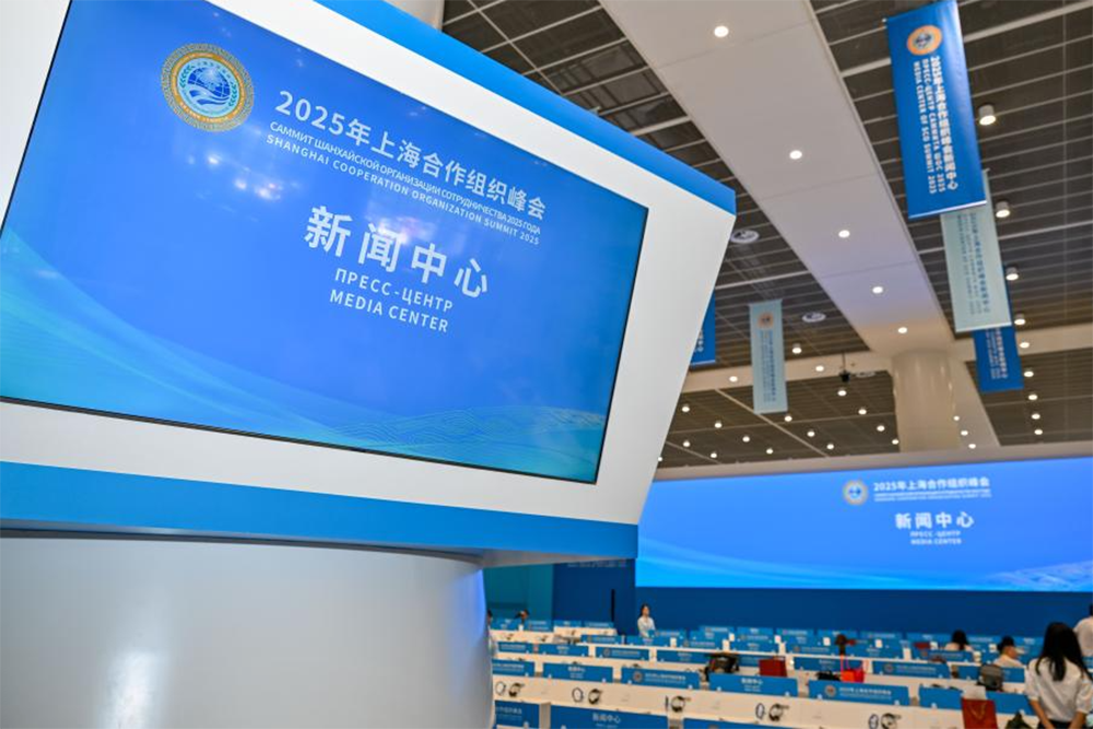 2025年上海合作组织峰会新闻中心。(图片来源:新华社)