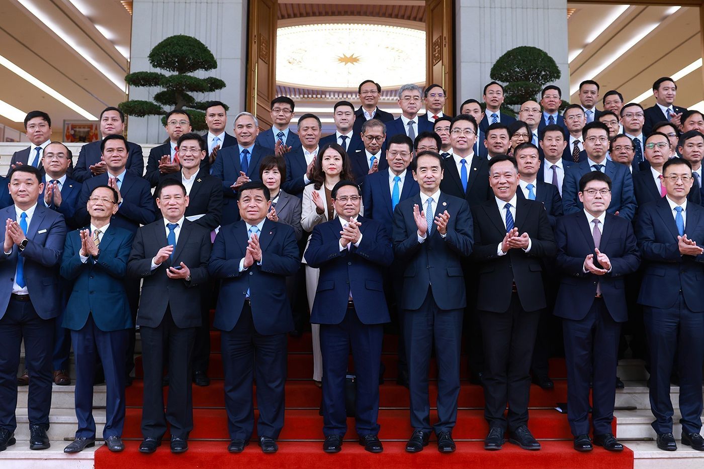 2025年2月28日在河内,越南政府总理范明正主持与中国企业的座谈会。(图片来源:越通社)