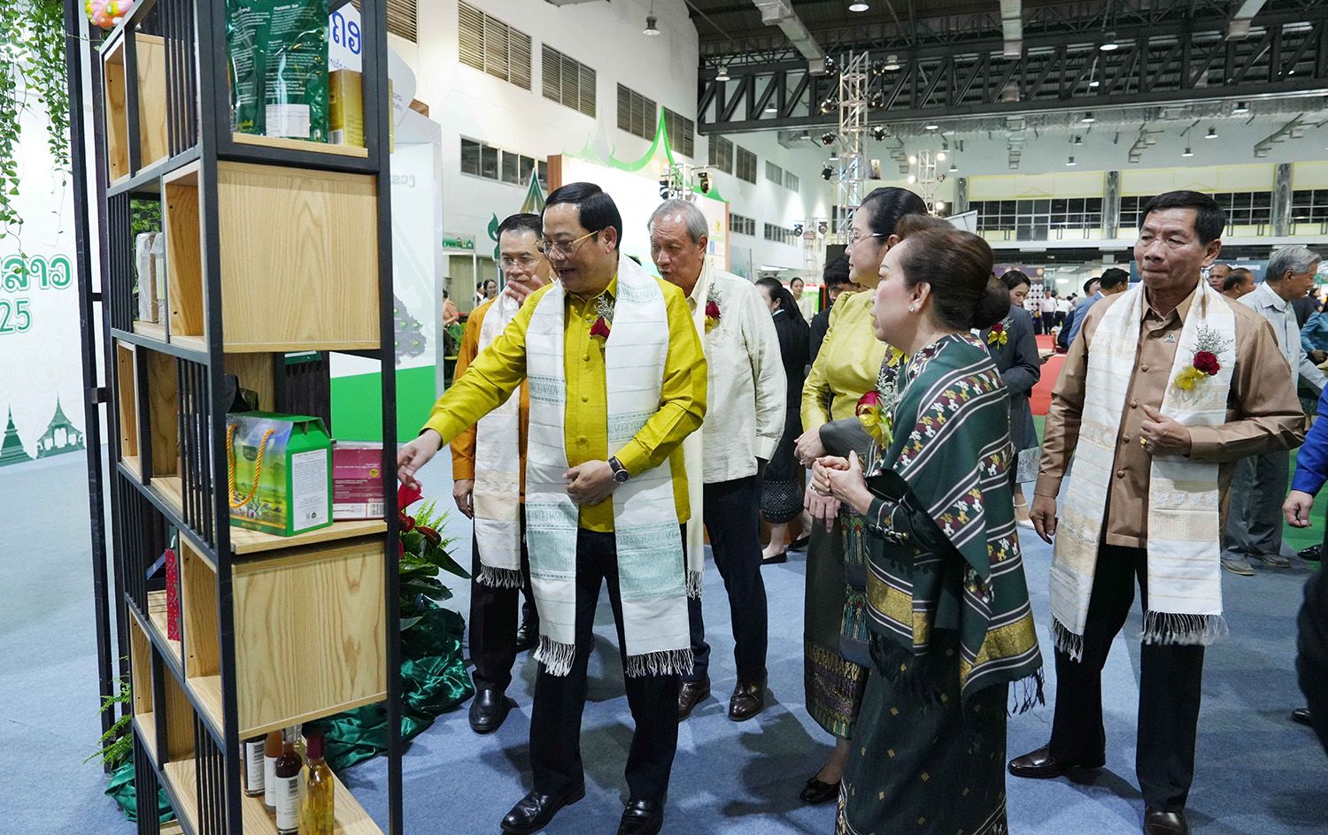 老挝政府总理宋赛·西潘敦及各位代表参观2025年老挝产品周。(图片来源:越通社)