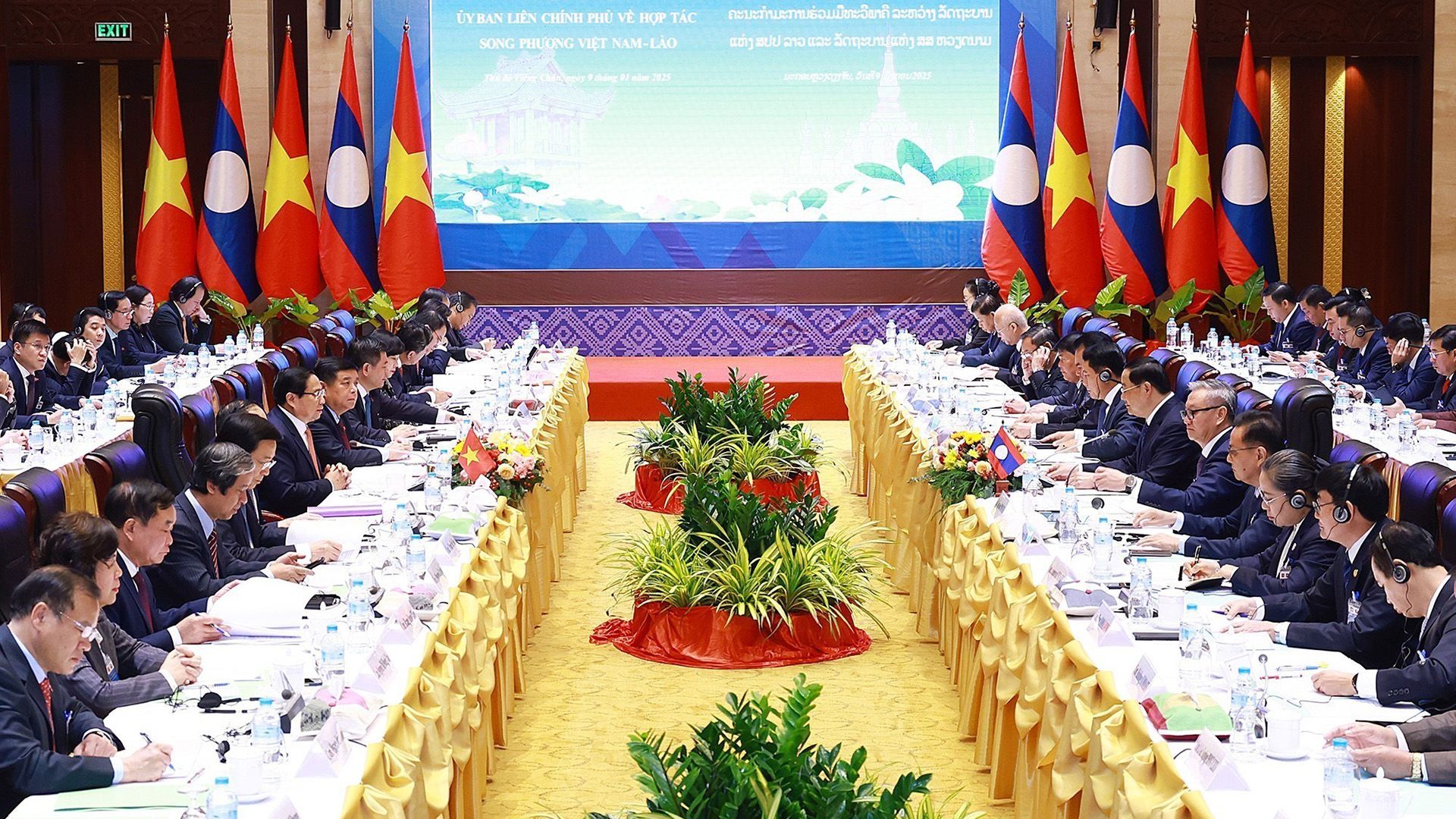 越南政府总理范明正与老挝政府总理宋赛·西潘敦共同主持越老两国政府间委员会第47次会议。(图片来源:越通社)