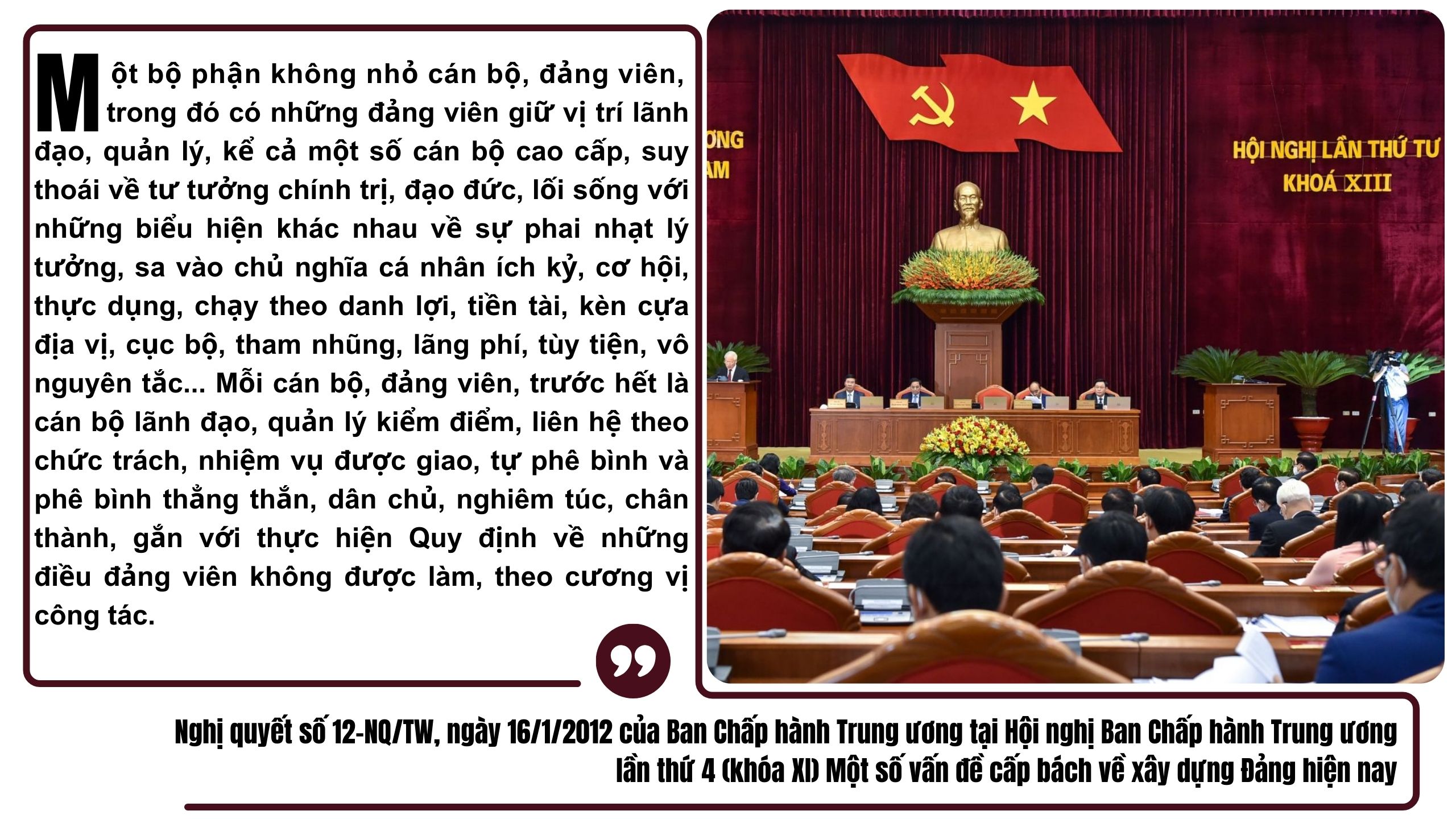 Tư tưởng, hành động cá nhân chủ nghĩa, những biểu hiện suy thoái về đạo đức, lối sống luôn gắn liền với suy thoái về tư tưởng chính trị và đó cũng là biểu hiện vi phạm nguyên tắc, kỷ luật đảng về mặt tổ chức. Đấu tranh, sàng lọc, loại bỏ những phần tử thoái hóa, biến chất, để Đảng trong sạch, vững mạnh hơn.