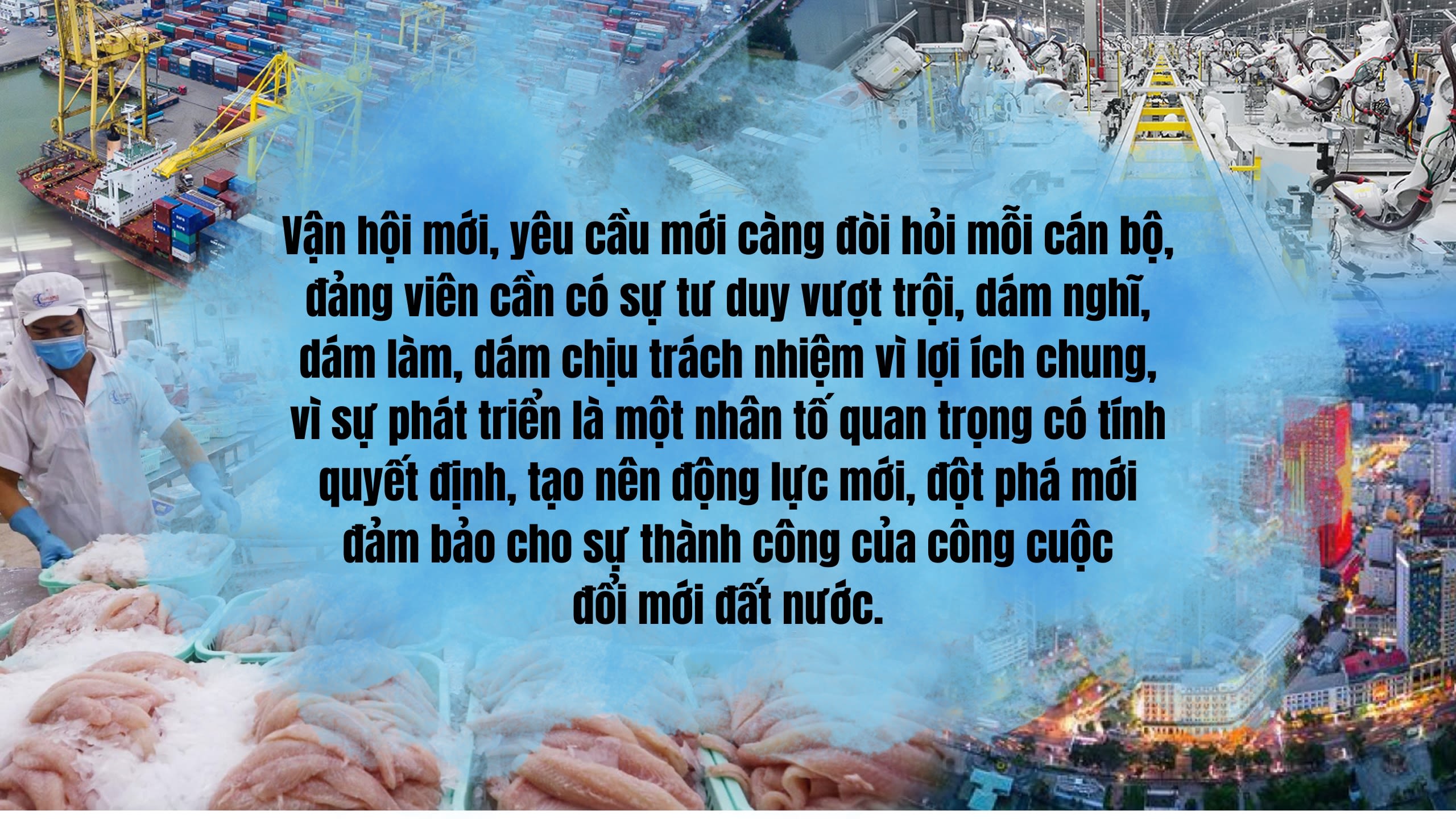 Thứ hai, là thành viên của Đảng, tiêu chuẩn, chất lượng mỗi đảng viên phải thể hiện được tính tiền phong trong nhận thức và hành động; phải có đủ phẩm chất và năng lực tham gia vào các khâu của quy trình lãnh đạo của Đảng, từ việc tham gia xây dựng chủ trương, nghị quyết, đến việc tuyên truyền, vận động, giáo dục, thuyết phục và tổ chức thực hiện một cách tích cực nhất. Thước đo năng lực, bản lĩnh của đội ngũ cán bộ, đảng viên hiện nay thể hiện ở phẩm chất dám nghĩ và tạo đột phá từ thực hiện việc mới, việc khó, biết hy sinh, cống hiến.