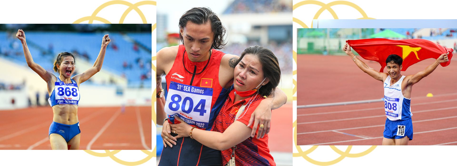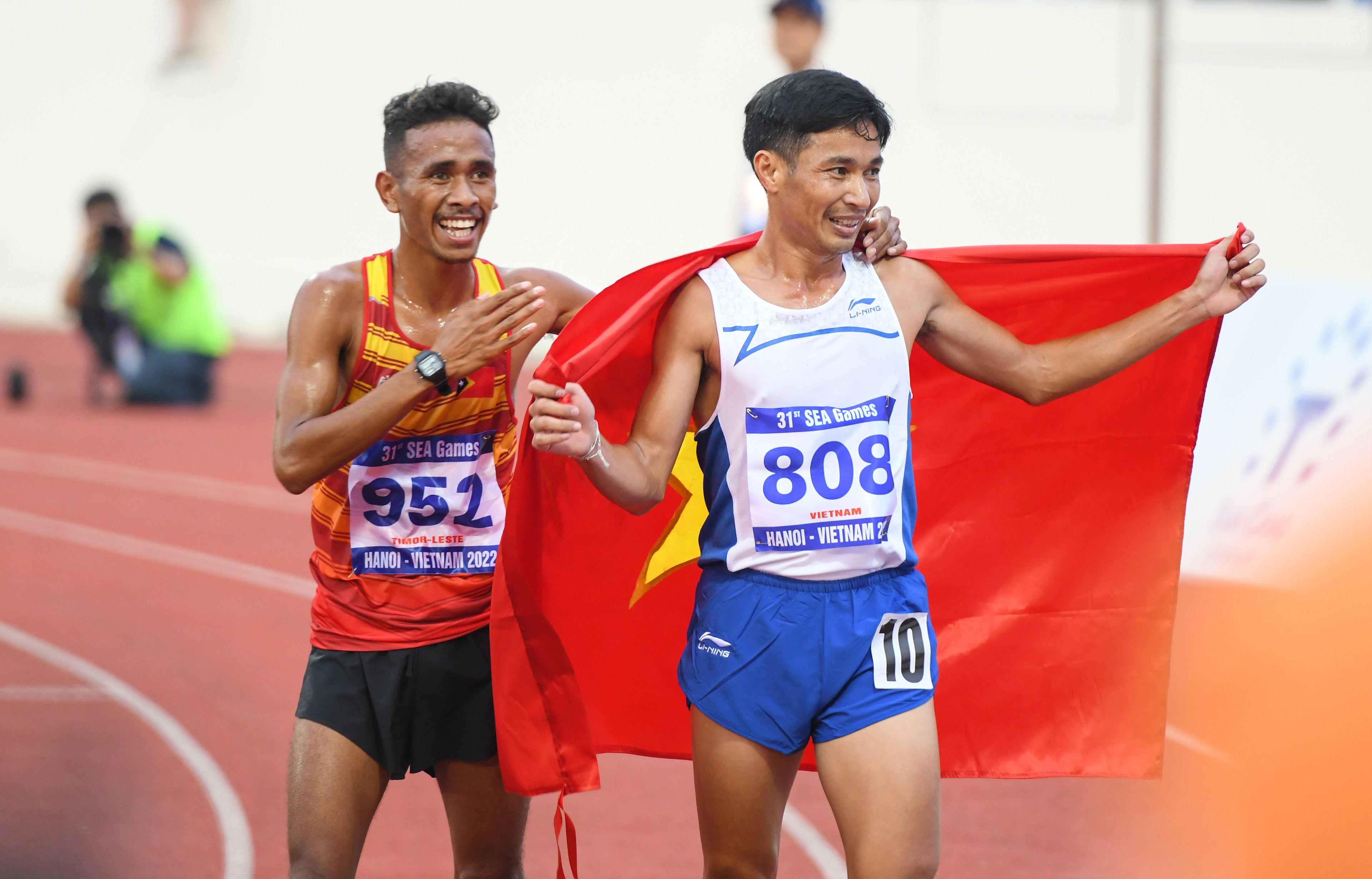 参加所有47套奖牌的大部分比赛项目的比赛,各届奥运会最基本运动——田径为越南带来创纪录的奖牌:22枚金牌,14枚银牌和9枚铜牌。这一成绩远远超过泰国田径的成绩(12枚金牌、10枚银牌、9枚铜牌)和菲律宾(5枚金牌、7枚银牌、14枚铜牌),使越南连续第三次在东运会获得这项运动的第一名。精心准备以及主场优势有助于越南运动员取得的成绩远远超过2017年和2019年东运会的成绩。其中,有的比赛项目是越南第一次获得金牌的,如黄元青运动员的马拉松距离。许多优秀运动员对田径作出巨大贡献,如阮氏鹰(1500米、5000米和女子3000米障碍赛赛项的3枚金牌);阮文来(男子5000米和10000米);阮氏玄(女子400米和4x400米接力);郭氏兰(400米障碍赛、女子4x400米接力)。