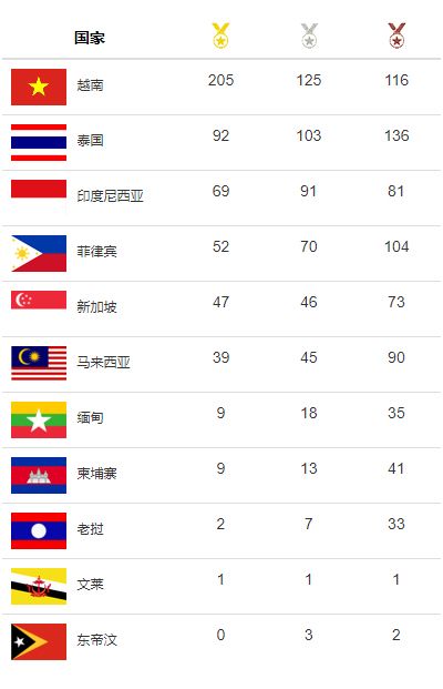 与泰国、印度尼西亚、菲律宾、马来西亚的洲际、国际赛绩相比,越南体育更逊一筹。在第31届东运会上,泰国体育代表队虽然仅夺得92枚金牌、102枚银牌和136枚铜牌,刷新4项东运会纪录并在总奖牌榜上名列第二位,但是在许多奥林匹克比赛项目占优势。印度尼西亚体育代表队以69枚金牌、91枚银牌和81枚铜牌名列总奖牌榜上第三位,打破3项东运会纪录,但在羽毛球、举重、射击、办卡苏拉、拳击、划艇、空手道等运动仍是劲旅。新加坡体育代表队在总奖牌榜上仅名列第五位,新加坡男子游泳队的赛绩与越南游泳队略逊一筹,但是新加坡仍是体育劲旅,其游泳队和击剑队分别夺得21枚金牌和6枚金牌。