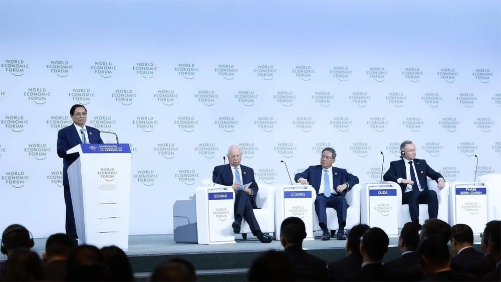2024 年 6 月 25 日,越南政府总理范明正在中国举行的世界经济论坛第15届新领军者年会上发表讲话。(图片来源:越通社)
