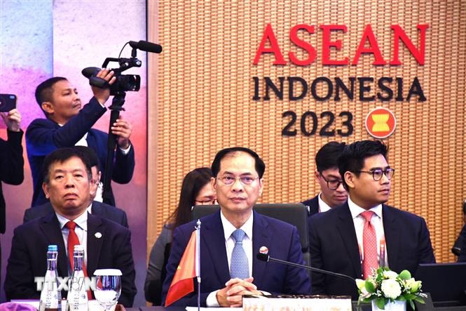 越南外交部长裴青山出席在雅加达举行的第56届东盟外长会议(AMM)。(图片来源:越通社)