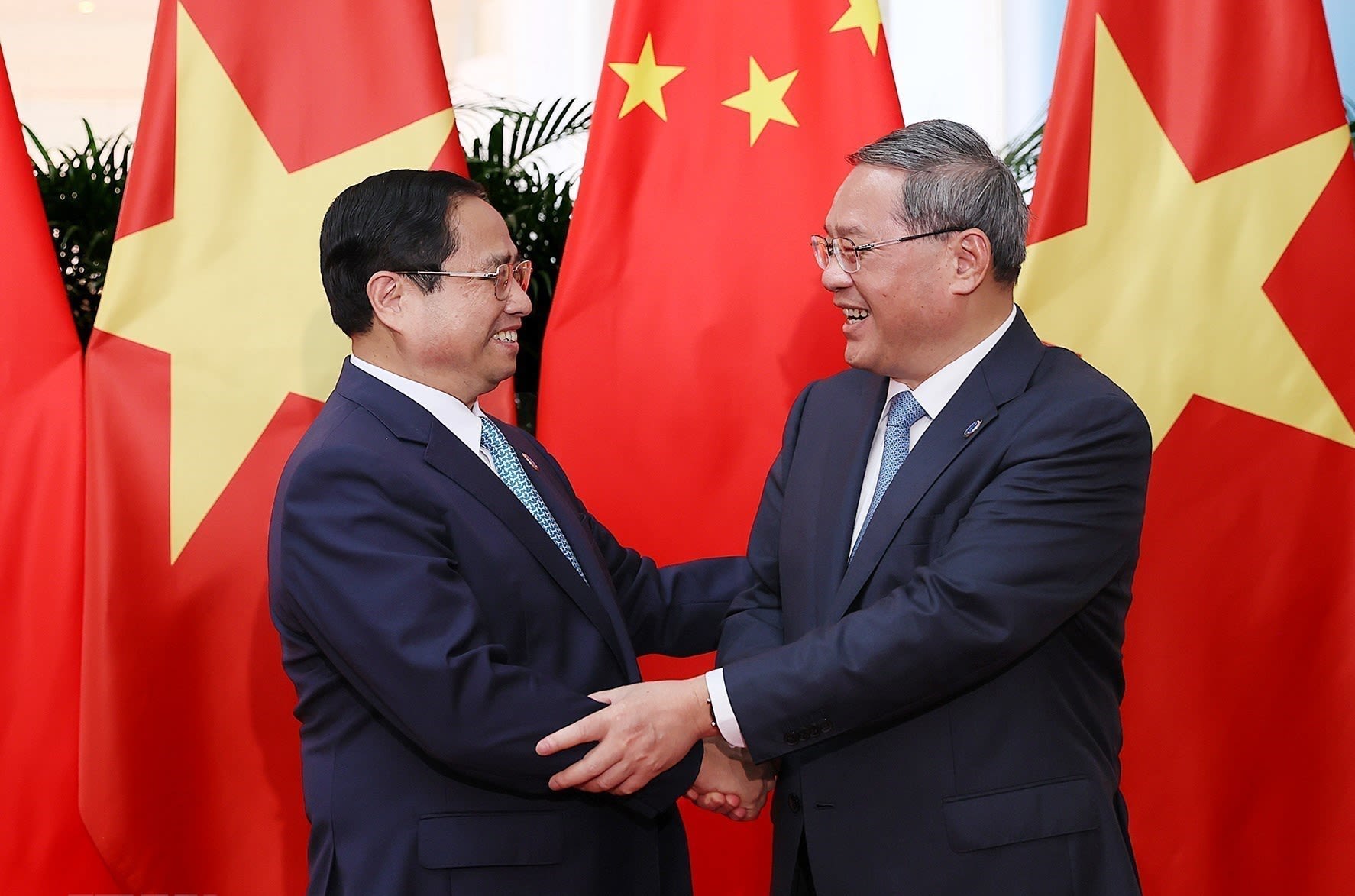 越南政府总理范明正和中国国务院总理李强。(图片来源:越通社)