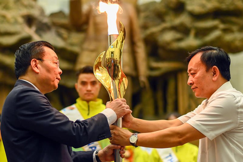 11名优秀运动员参加第31届东运会圣火取火仪式。(图片来源:人民报网)