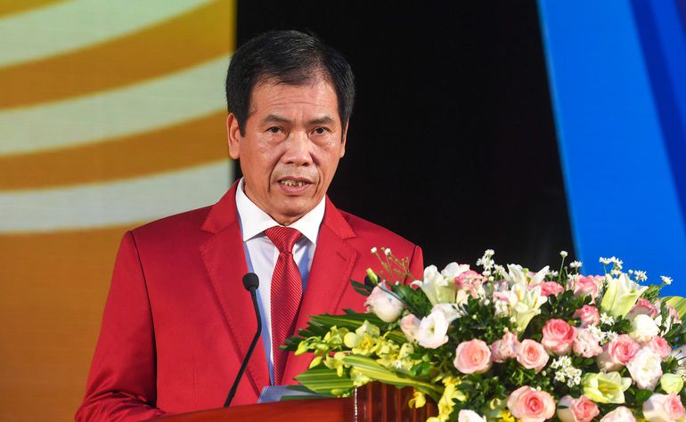 越南体育总局副总局长、越南第31届东运会体育代表团团长陈德奋在越南体育代表团第31届东南亚运动会出征仪式上发言。