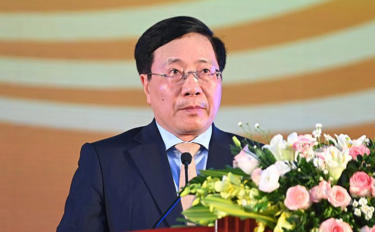 越南政府常务副总理范平明在越南体育代表团第31届东南亚运动会出征仪式上发言。