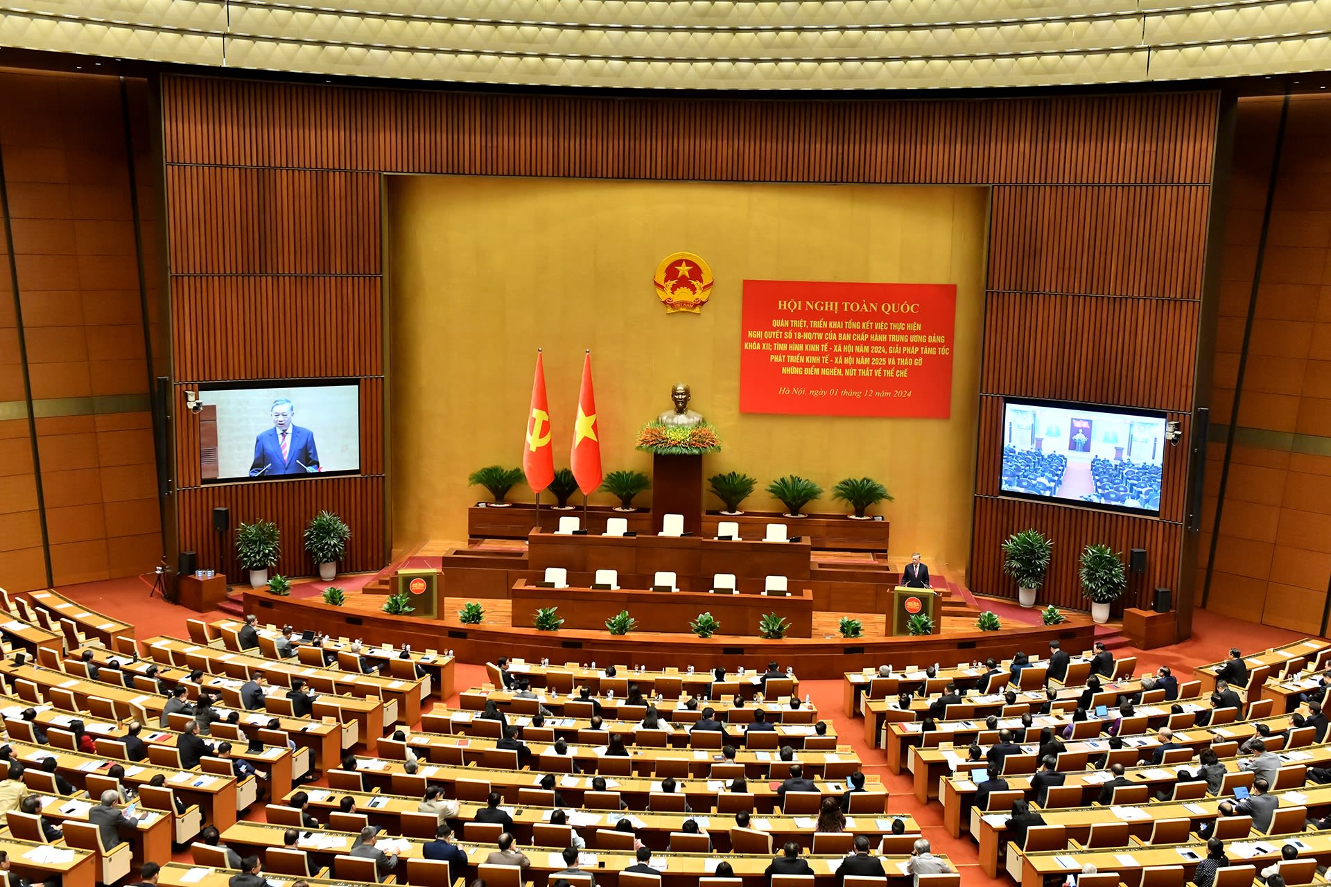 越共中央总书记苏林在关于贯彻落实并总结越共十二届中央委员会第18-NQ/TW号决议;2024年经济社会形势及为2025年推动经济社会快速发展和破除体制障碍和瓶颈提出解决方案的全国会议上发表指导性讲话。